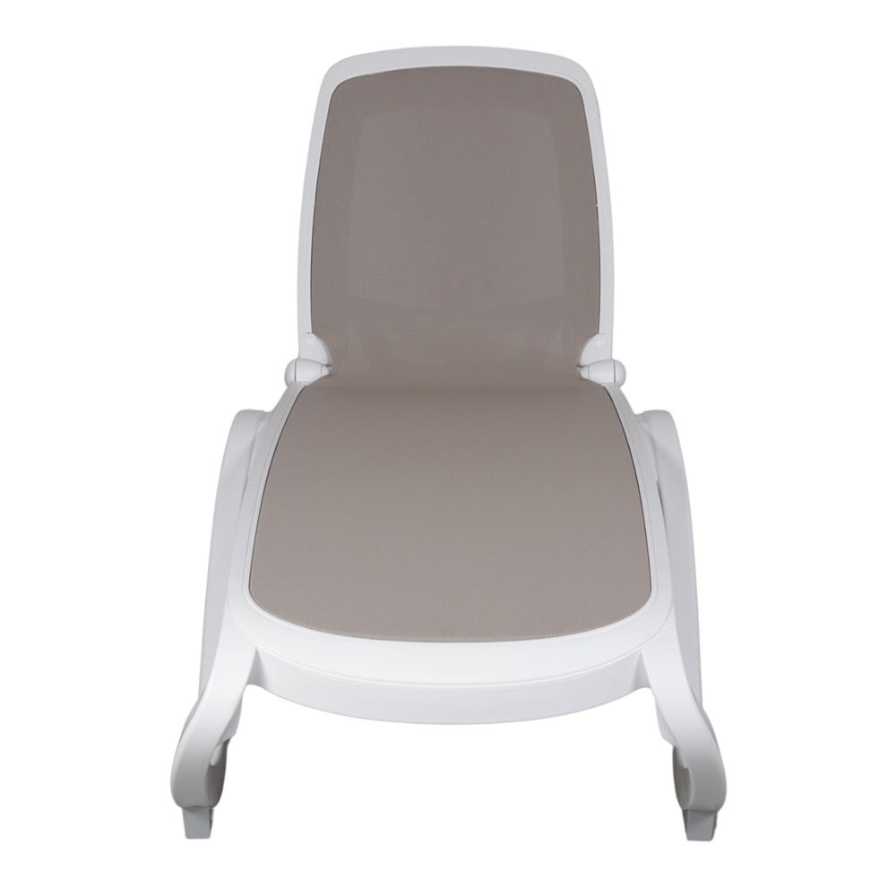 Stackable lounger for indoor and outdoor use made of polypropylene and Textilene.