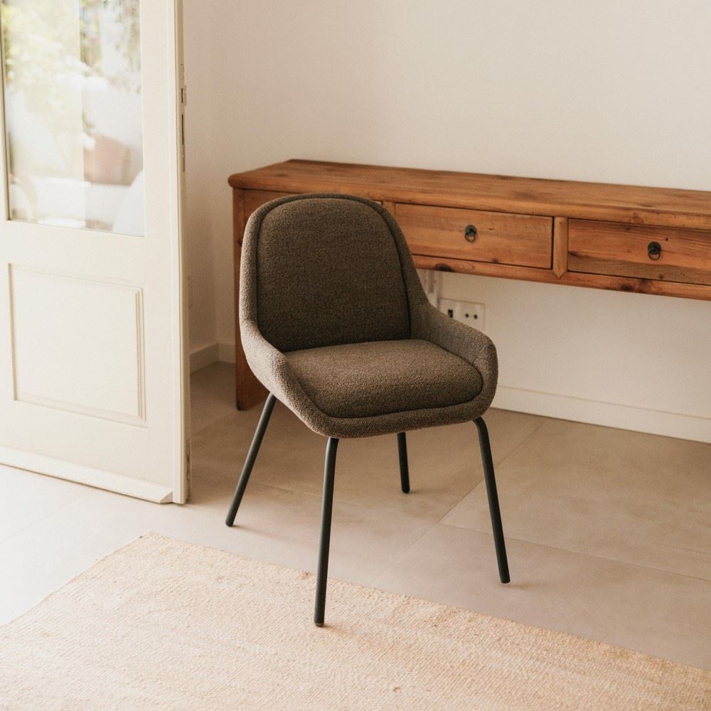 With compact dimensions, the Olema upholstered chair fits easily into small spaces without sacrificing style or comfort. It is an ideal choice for those seeking a contemporary piece of furniture that stands out for its design and practicality.