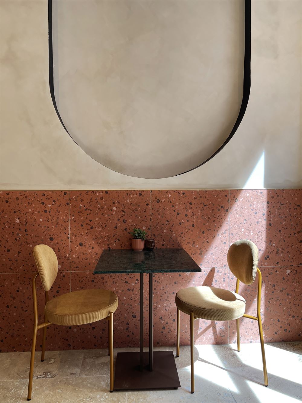 Our Ondina table frame follows the Industrial style, and it’s perfect for catering premises. Besides, you can get it in different finishings: oxide, black or white. Very resistant and stable, being made of cast iron. You can combine it with any of our tabletops made of wood, terrazzo or marble.