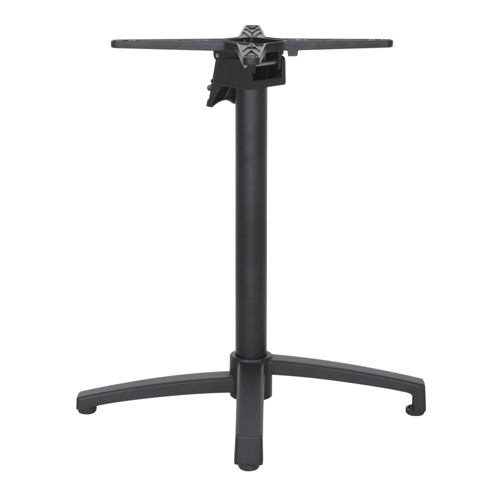 Our Owen textured table frame is a folding frame made of metal and in black color. In addition, the legs are levelable. This frame makes a perfect combination with our wooden tabletops. It is suitable for both indoor and outdoor use, and it can be used in both home or catering premises. This frame is very stable, as it includes removable weights under the nails.