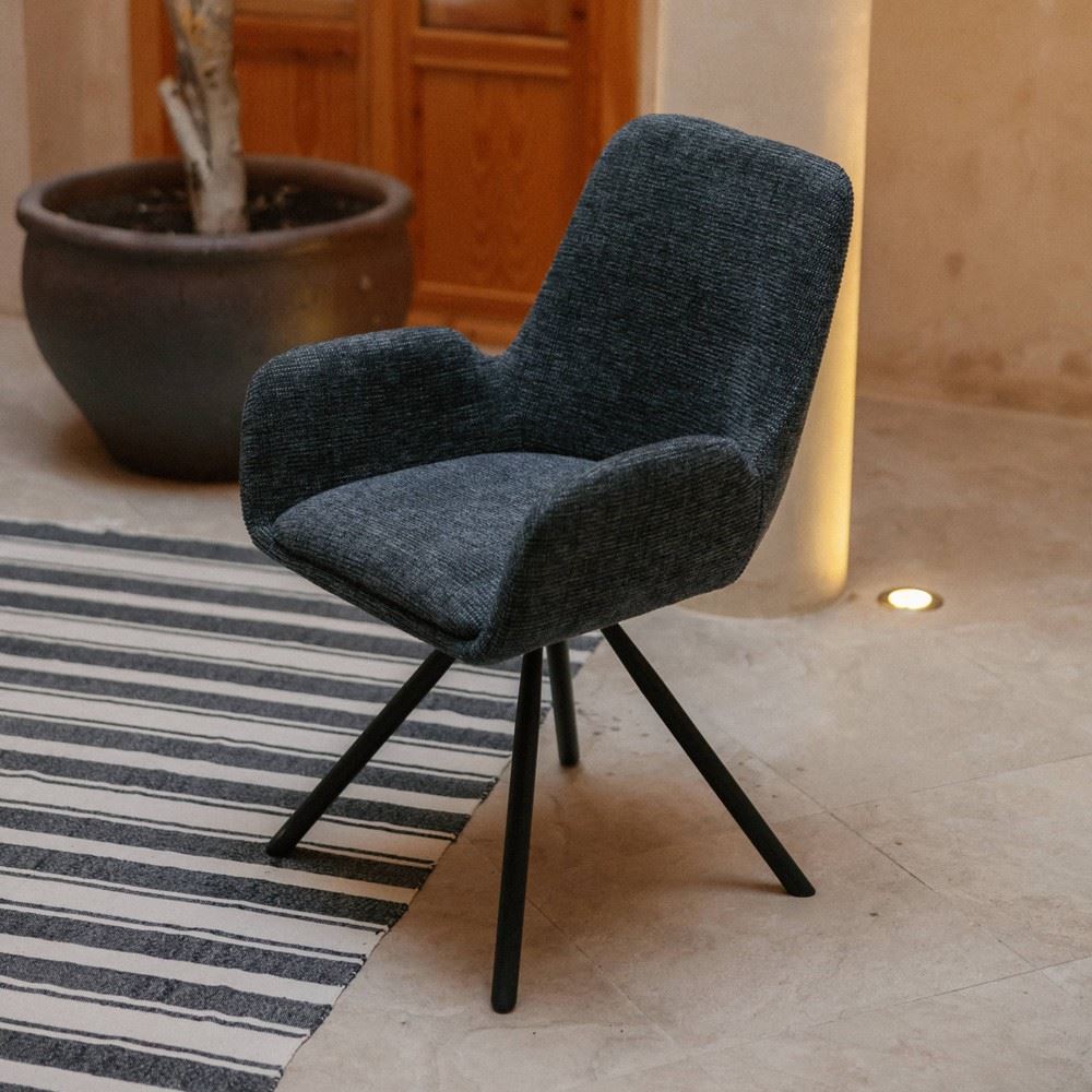 The seat and back of the chair are upholstered in a soft, durable textile, providing exceptional comfort and a luxurious feel when seated. The choice of textile has not only been made with aesthetics in mind, but also with practicality and durability in mind, ensuring that the chair retains its beauty over time and withstands daily wear and tear.