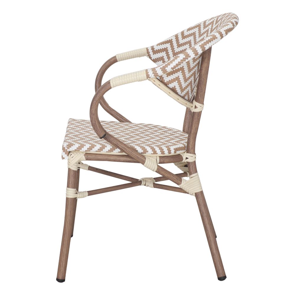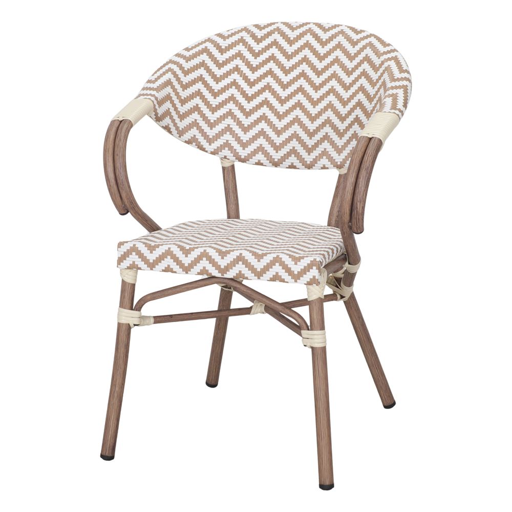 The Paloma outdoor chair combines elegance, comfort and functionality in a piece perfect for terraces, patios and gardens. With a distinct bistro style, it evokes the charm of Parisian cafés with a light, fresh and timeless design. Its tubular aluminum frame ensures strength and durability, while the imitation olive wood finish adds a warm and natural touch, ideal for outdoor environments with a cozy and sophisticated style.