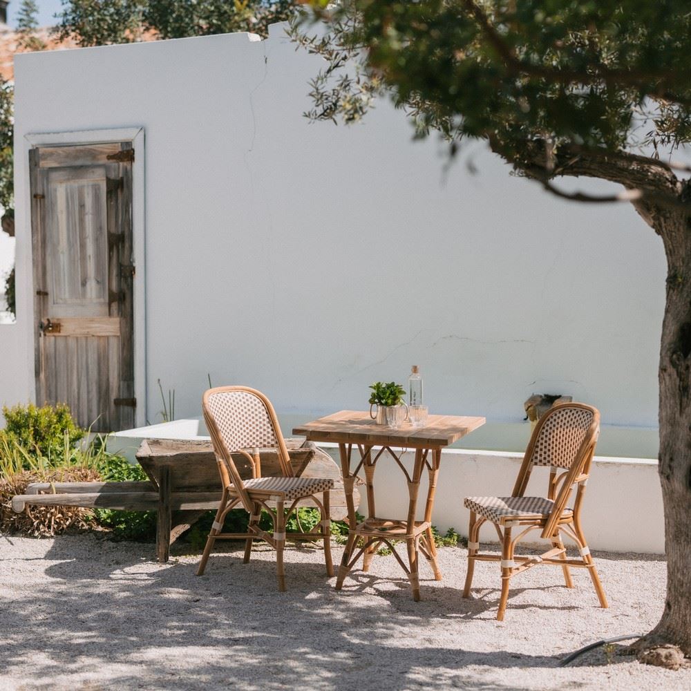 The Paradise dining table is perfect for small spaces or as a hospitality table. Made of rattan and teak wood, this table will bring a Mediterranean touch to your dining room.