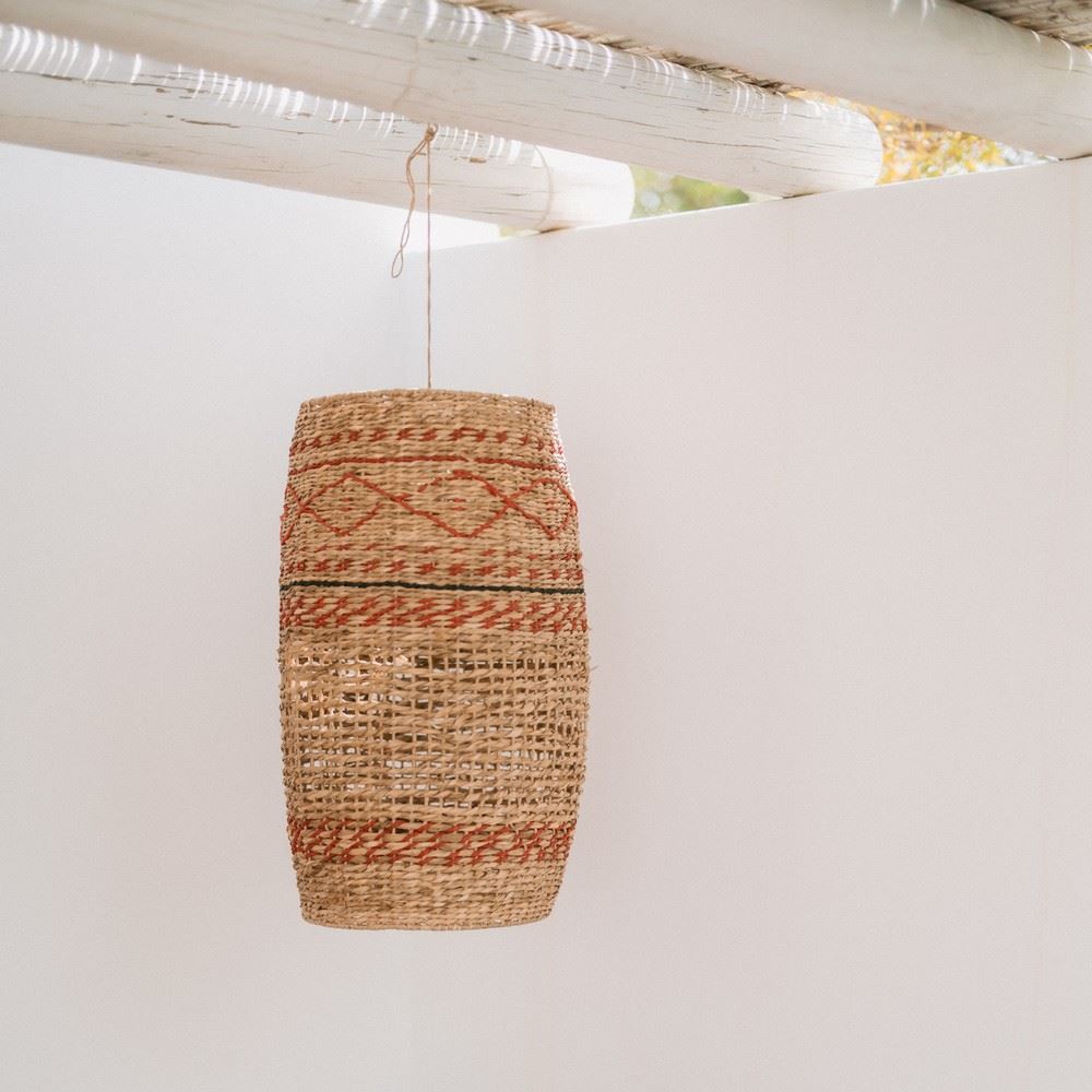 The Pascal natural fiber lampshade is perfect for ceiling lamps in Mediterranean style spaces. With an eye-catching design and red details, it is truly original. The Pascal natural fiber lampshade will look spectacular with an incandescent filament bulb (wiring not included), creating a warm and cozy atmosphere.