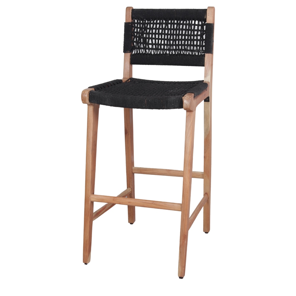 The Patsy wood and cord high stool is on trend this season. Cord, so on trend right now, goes along the tropical wood frame, creating the seat and backrest trough braiding. A high stool to provide an organic touch to your space.