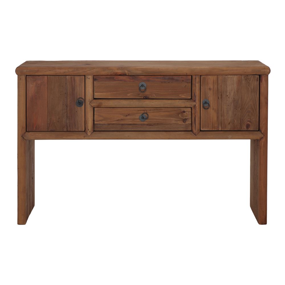 The Pingo wooden sideboard is a handcrafted piece made of recycled pine. It has a storage system with 2 drawers and 2 120 frontal doors. Its rustic look will add a cozy touch to any entryway.