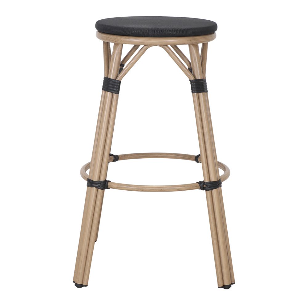 The structure is made of tubular aluminum with a refined bamboo-effect finish, which not only gives it a natural and sophisticated look, but also guarantees lightness and weather resistance. Thanks to this material, the stool is durable, stable and easy to move, ideal for terraces, patios and gardens.