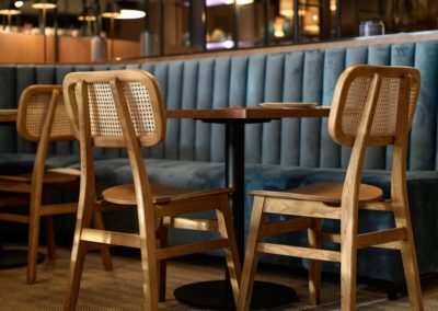 It is worth mentioning the upholstered benches, very fashionable in restoration projects, not only for their comfort, but also for their flirtatious aesthetics and for creating a very pleasant atmosphere.