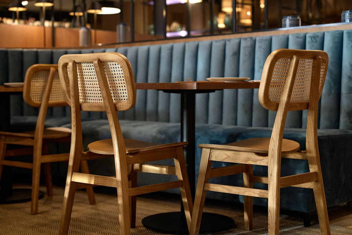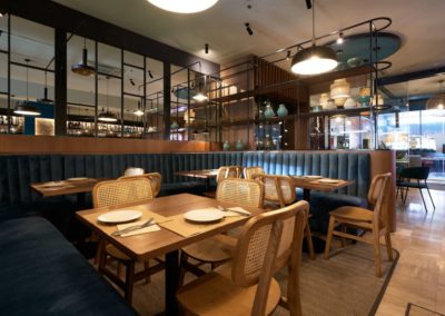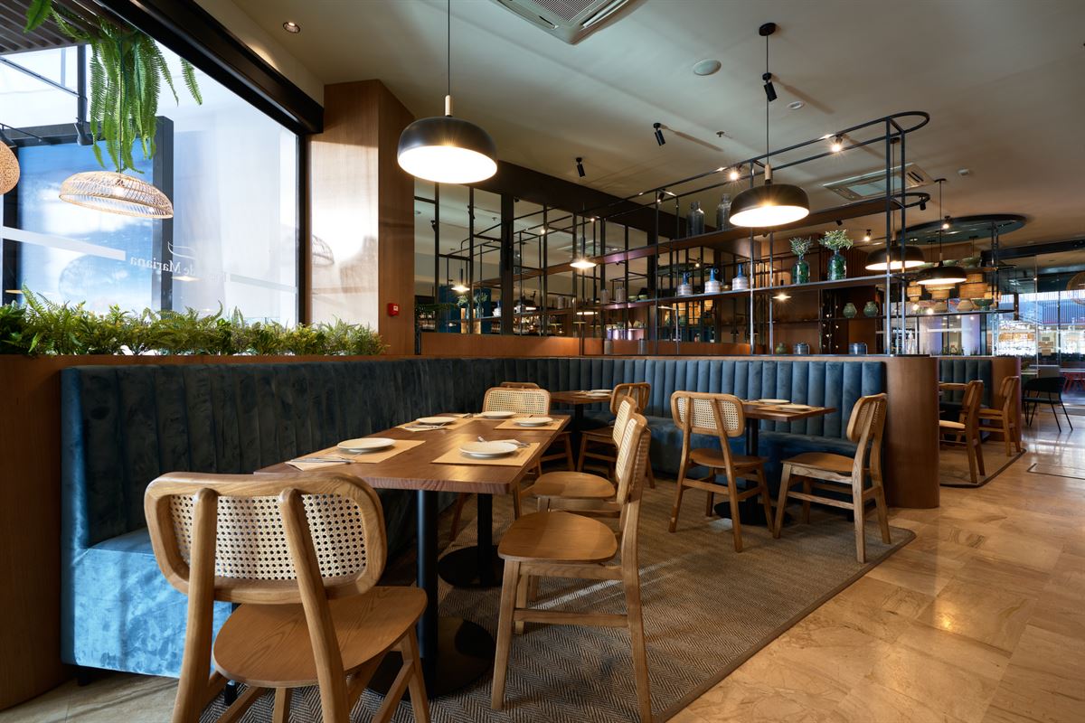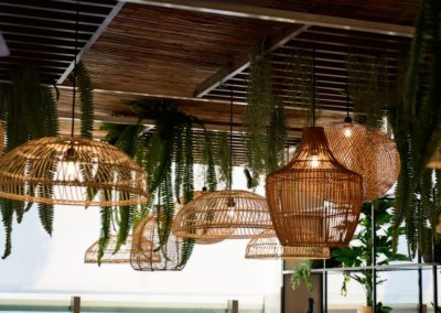 With a predominance of marine, brown and earth colors in chairs and tables; natural materials such as wood, rattan or rope in both chairs and screens; and the freshness of black metals in lighting and shelves, or glass in some of its lamps, all to envelop us in a space full of details and very warm, enjoy delicacies surrounded by a careful decoration.