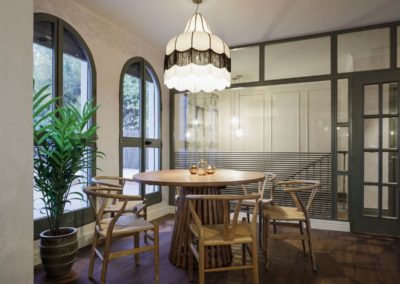 The premises, formed by different spaces well harmonized with each other, has two outdoor terraces in Mediterranean style. The interior shares in its two floors details such as greenish tones, baseboards or moldings. In addition, the interior and exterior integrate planters of vegetation to provide freshness and nuances.