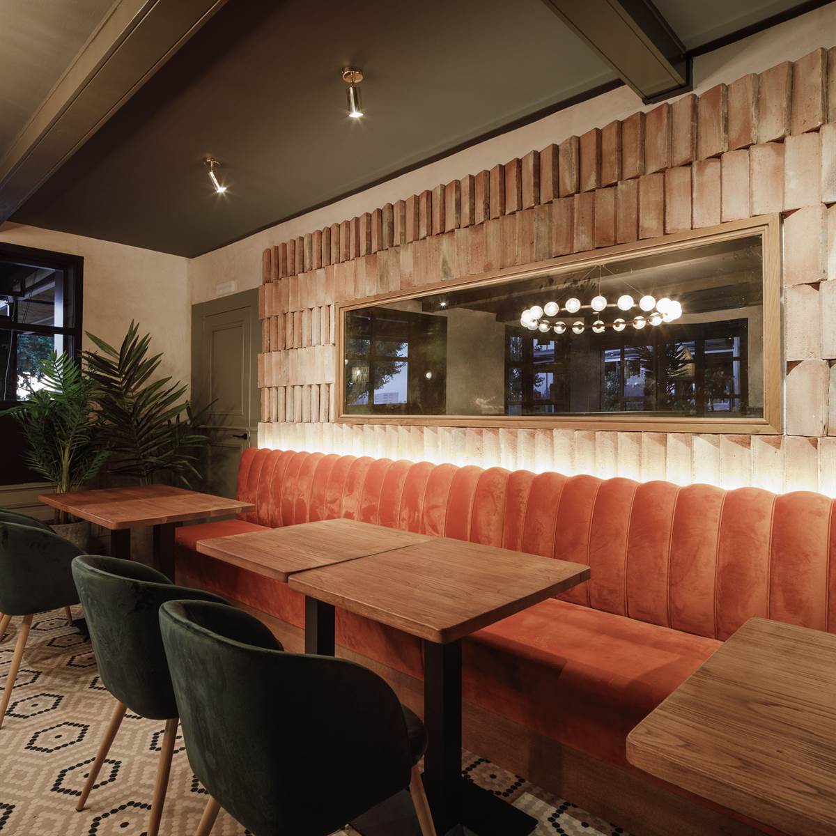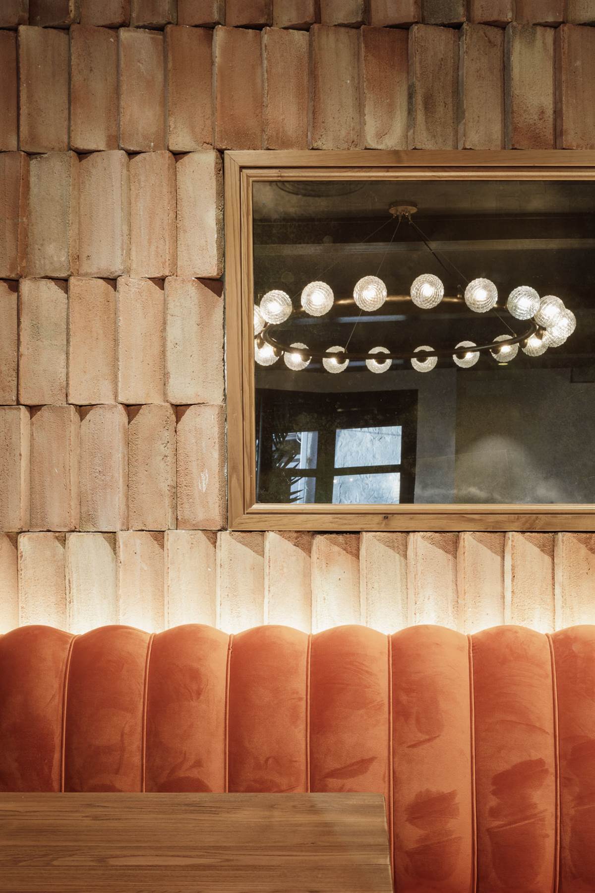 As for the seats, the tones of the upholstery have been emphasized to match the rest of the elements, such as bricks or upholstery.