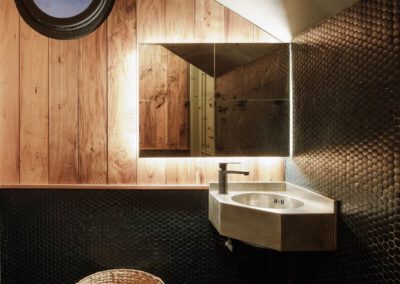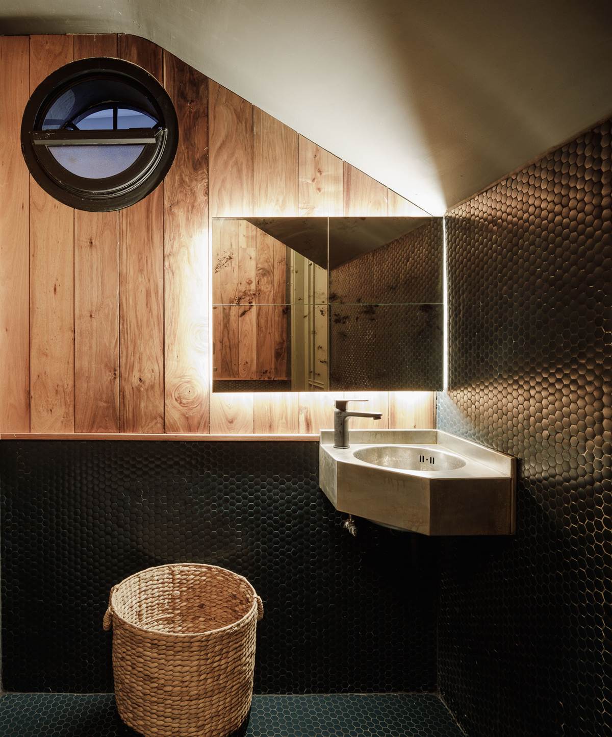 Finally, the sober style of the bathrooms, due to a mixture of materials with lighting that recreates the light-darkness, is worth mentioning.