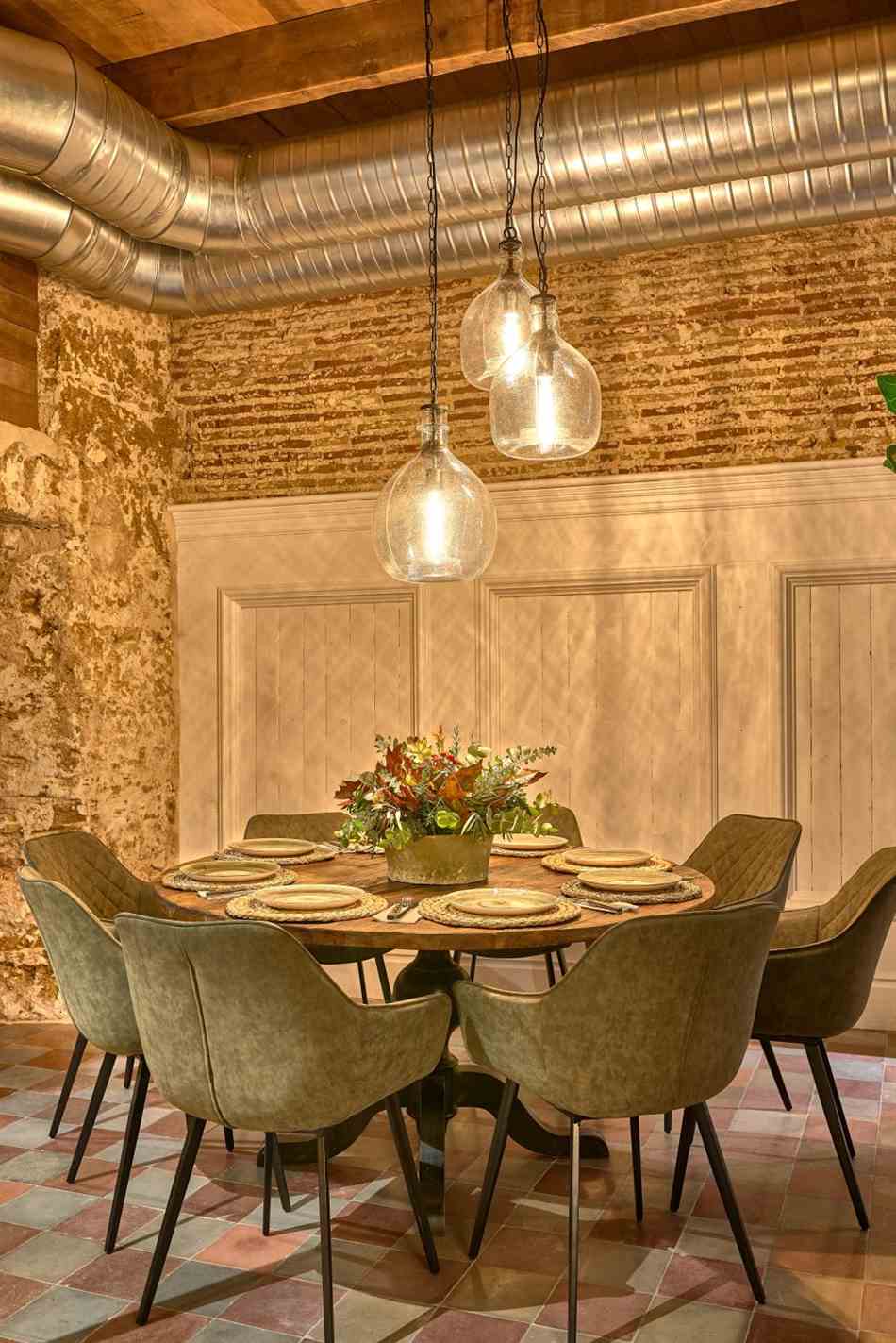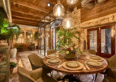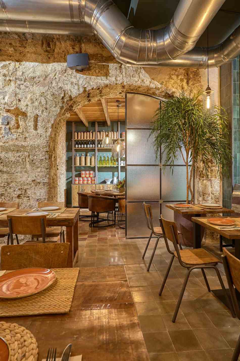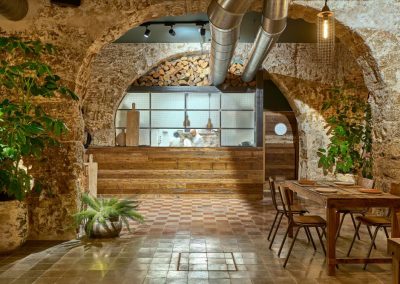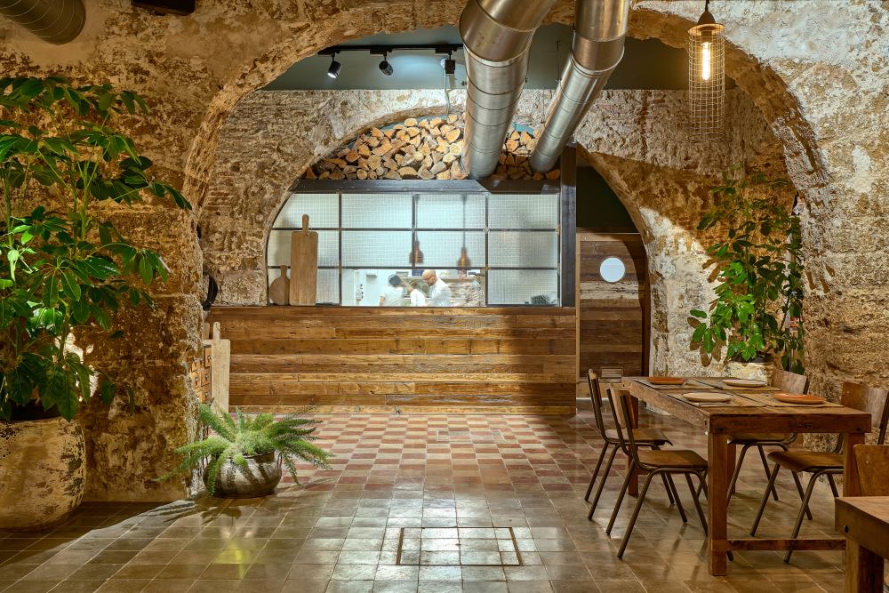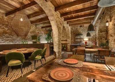Nordic style lamps, upholstered chairs and teak wood tables or natural rattan armchairs complete the interior decoration making the place a cozy and warm space. The architecture of the premises with those old arches and the oyster stone of Cadiz, provide a unique setting.