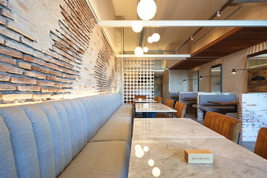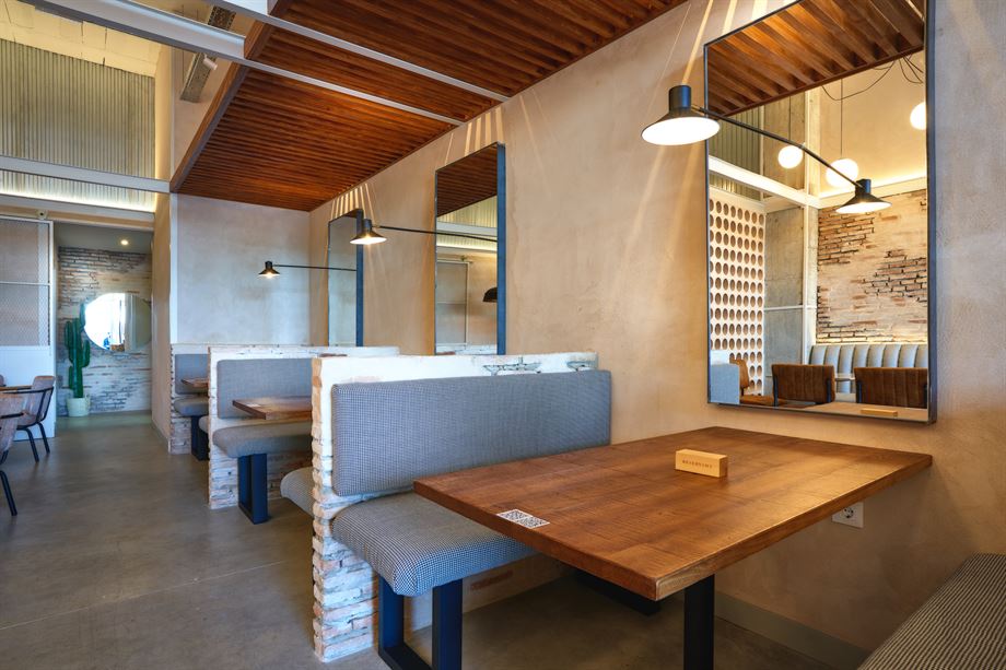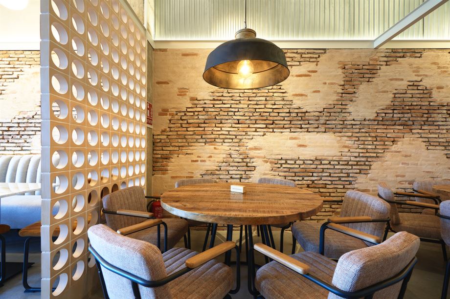 When we arrived at the restaurant area, we found the terrace with furniture imitating wood and a large rusty sheet metal sign that shows the name of the establishment, this was the first encounter with the style of the premises, a very sober and traditional industrial style, which does not leave indifferent. The interior design team of MisterWils, has taken care to the maximum as always, all the details to differentiate itself from the locals in the area.