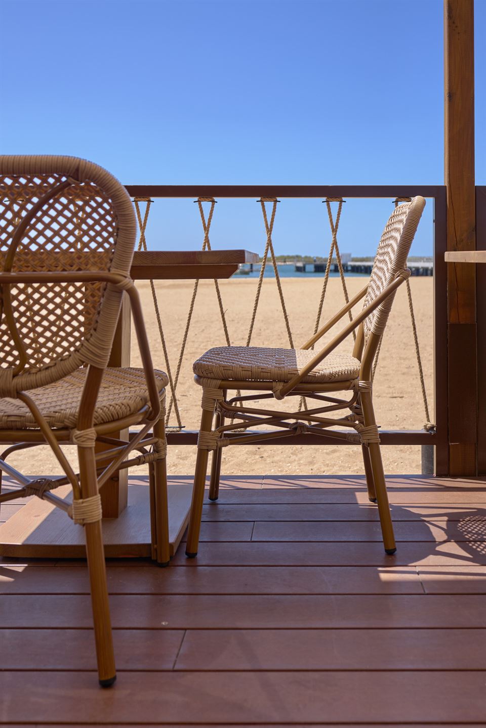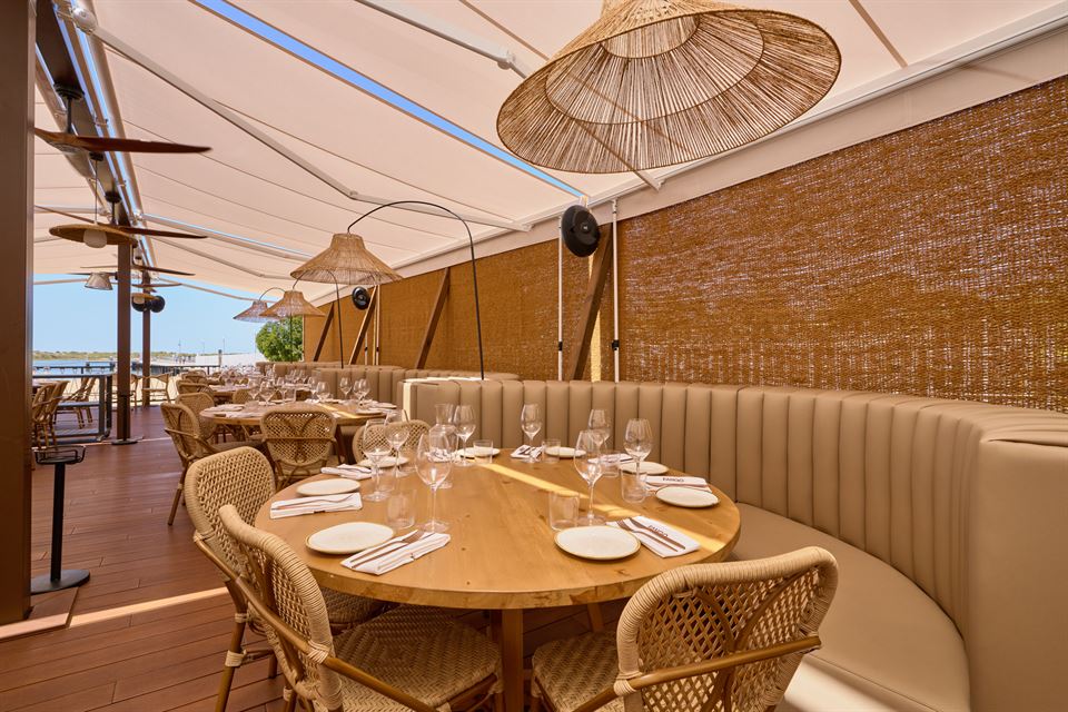 The restaurant, located next to the Piedras estuary, is ideal for family tourism. It has been refurbished to offer an elegant aesthetic inspired by a Mediterranean house, using natural materials such as wood and clay tiles. Lledó Gas, responsible for the interior design, has created a space that invites calm and prolonged enjoyment. The design of the refurbishment, carried out by Solarq Estudio and the Huelva-based company Alto de la Era, stands out for the building’s openness towards the estuary, allowing a wide view from the 300-square-meter terrace.