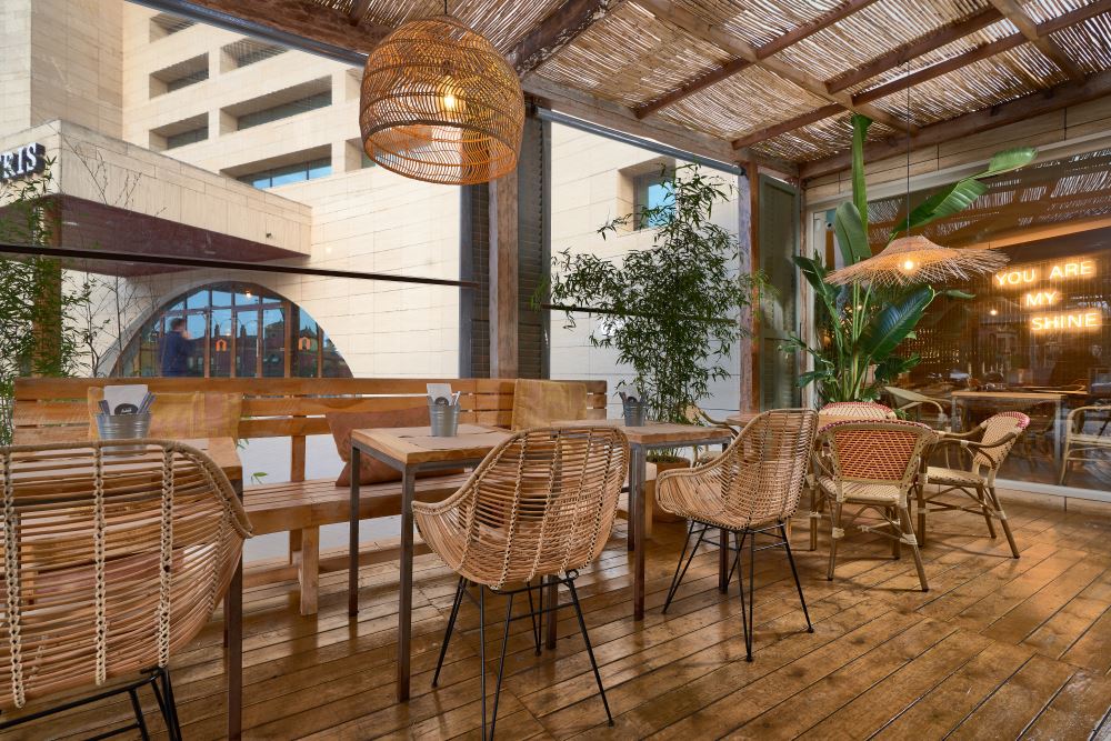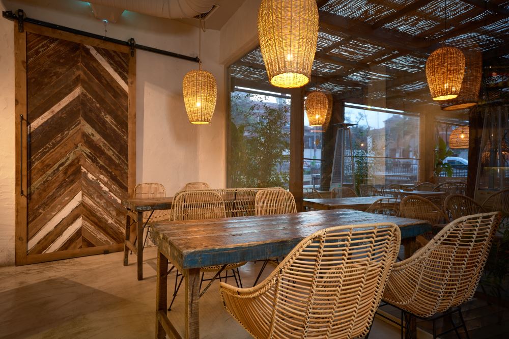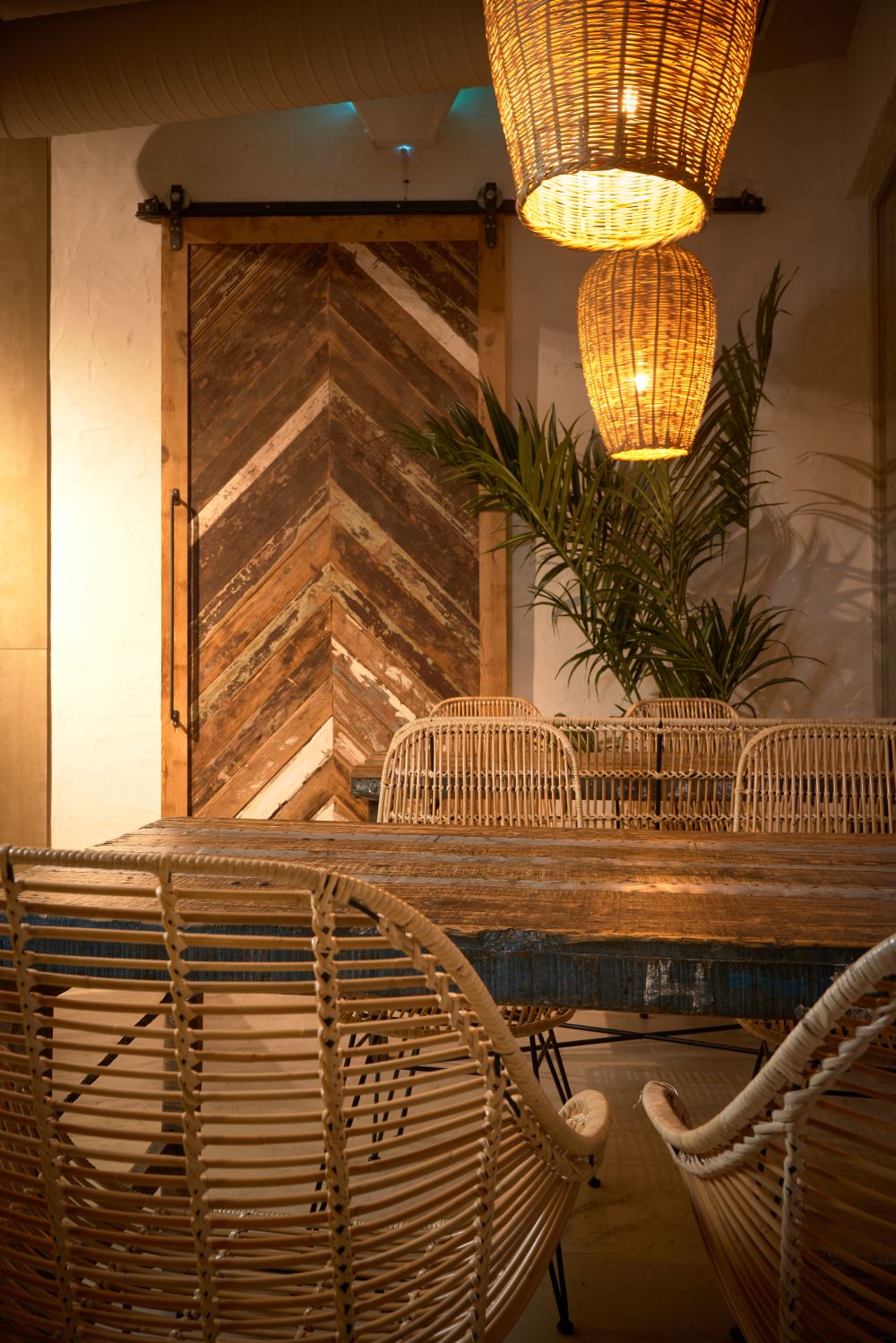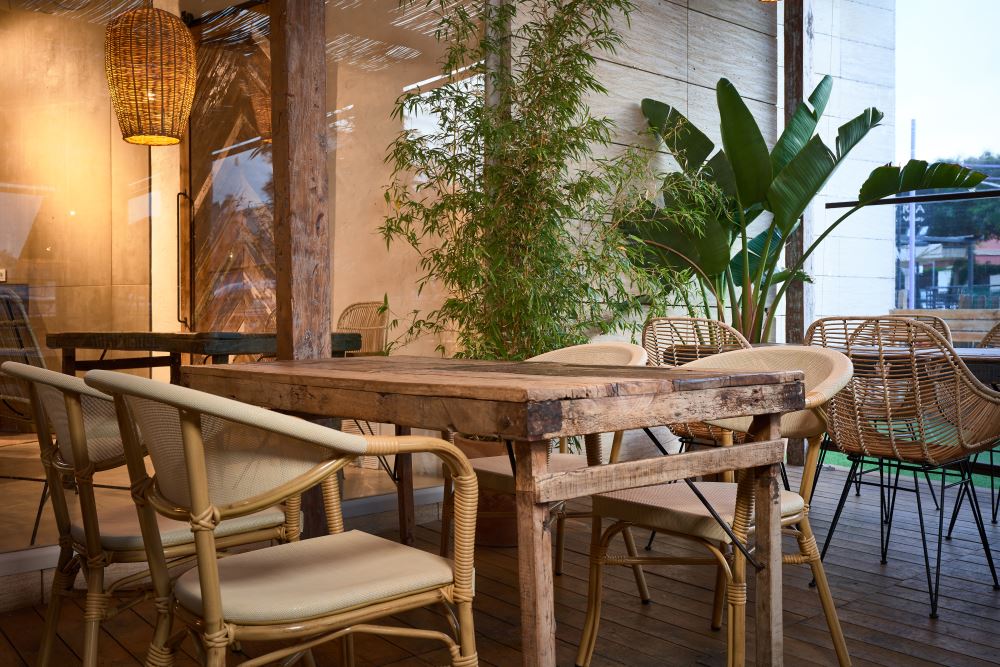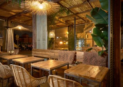On the outskirts of the Andalusian capital, in the town of Tomares, interior designers Bruno Bermúdez and Adrián Gómez have brought the chiringuito concept to the city, where they have created a wooden terrace and reeds in the purest beach style. Predominating warm colors, wicker lamps, esparto grass blinds, wooden furniture and rattan chairs, they manage to create a space both inside and outside as if we were tasting a hamburger or noodles on the beach.