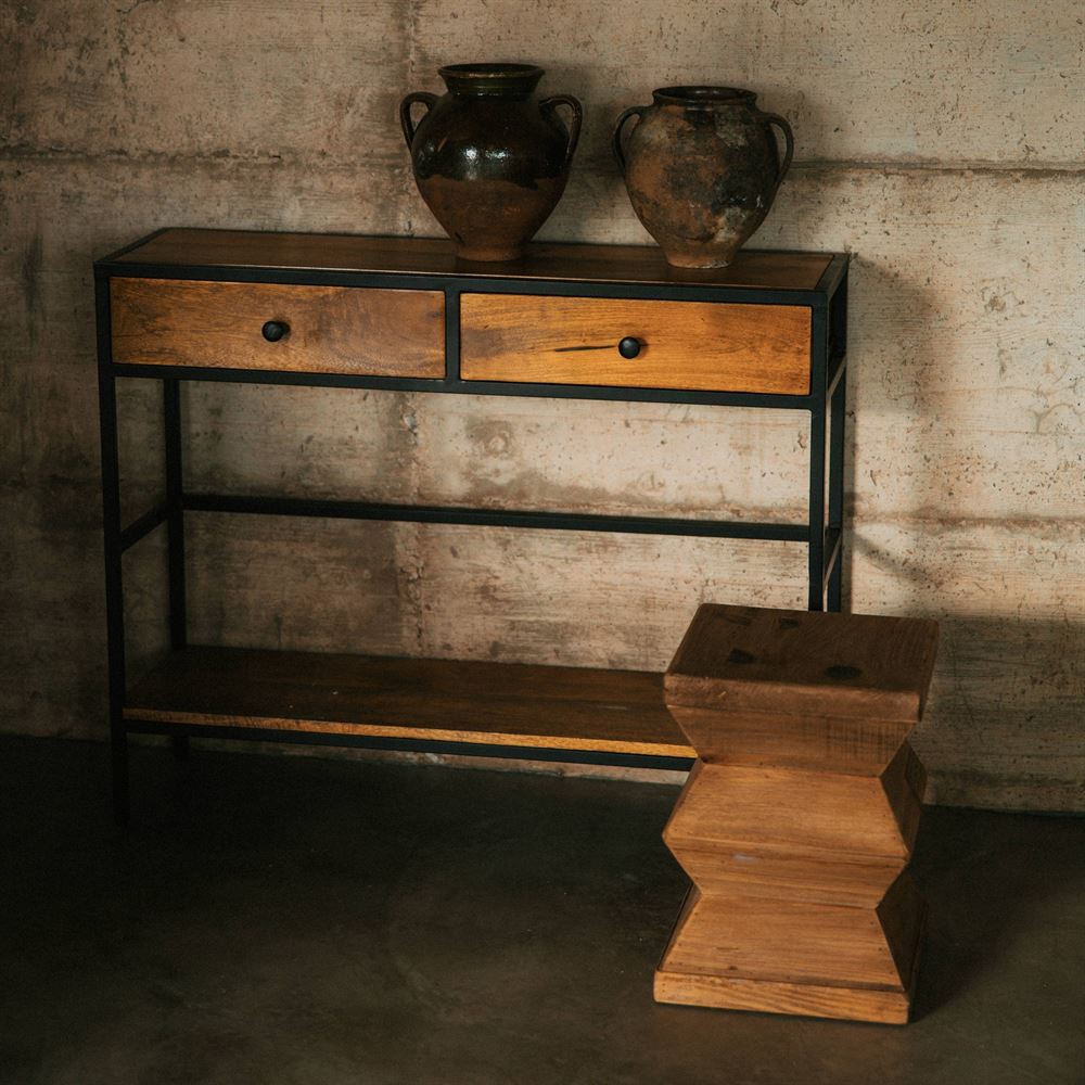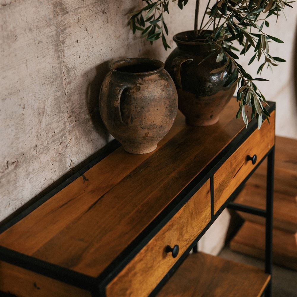 Hard to deny, our Industrial style Riben wood and metal sideboard is not lacking in elegance! We love the sleek and modern base in black metal that highlights the solid wooden frame. And not to mention the all natural wood finishing that will give free rein to your imagination. It can be placed in an industrial-inspired living room or in a more contemporary setting. Take advantage of its countertop to display your favorite objects: lamps, photo frames, travel souvenirs…