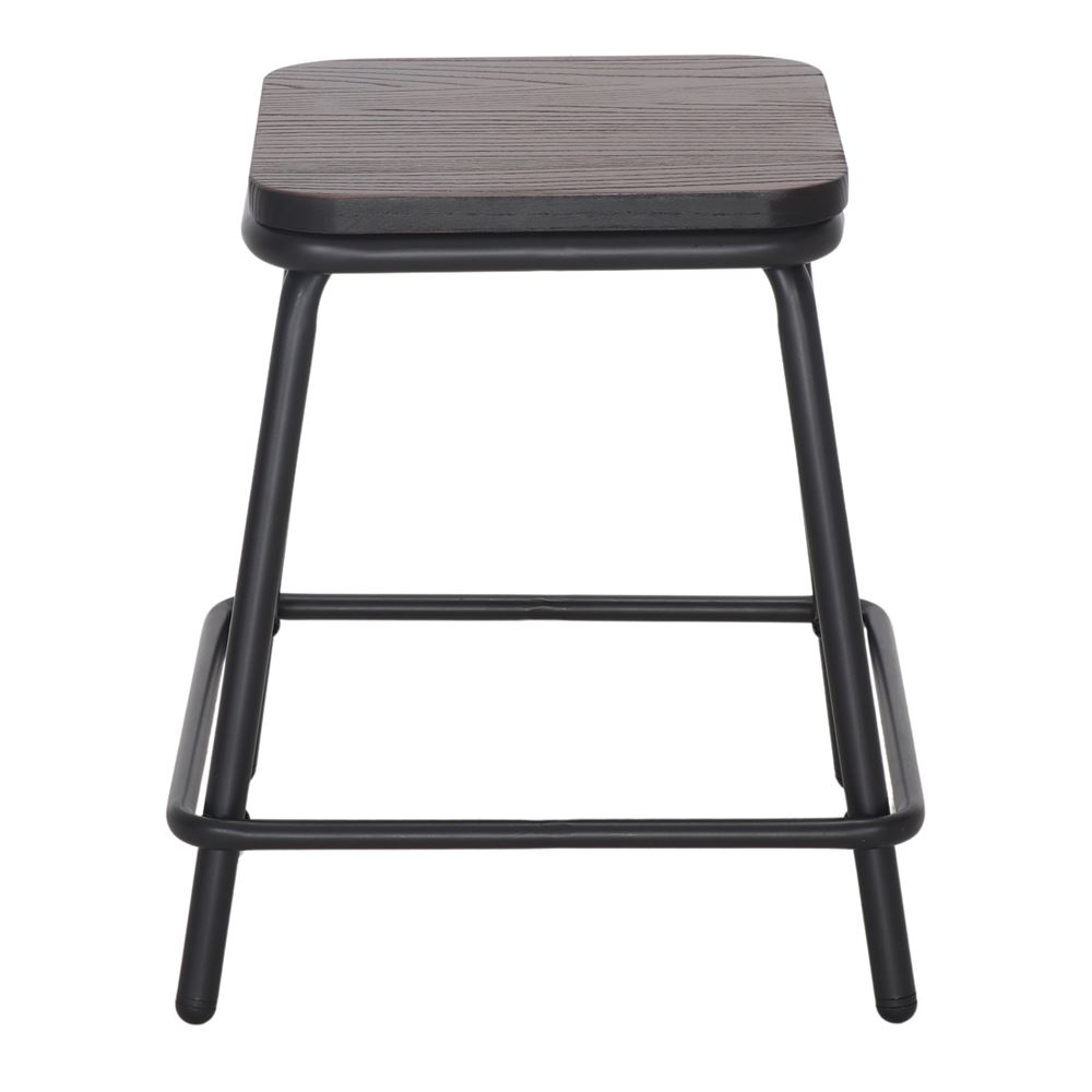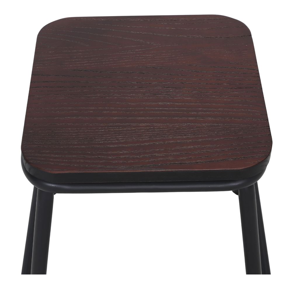 The Ritual metal and wood low stool follows the Industrial style. It has a tubular steel frame with black powder paint finishing.