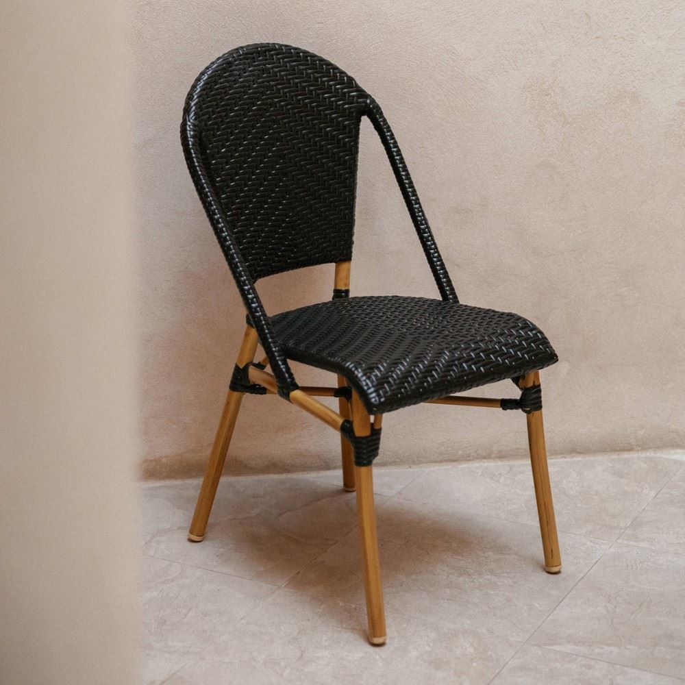 Our bistro-style Romel outdoor chair is made of aluminum with a faux rattan and synthetic pith finish. Synthetic rattan is about to make its way into any outdoor setting, and it’s no surprise: its solid weave lends texture to the look and has been used in some of the most iconic designs in decorating history. In this outdoor chair, synthetic rattan brings a more contemporary feel than traditional rattan and is easy to maintain. Perfect for a patio, deck or garden. Mix it with other Bistro style furniture for the perfect combination. Its unique design is a recipe for an original piece that will add a Parisian touch to your space.