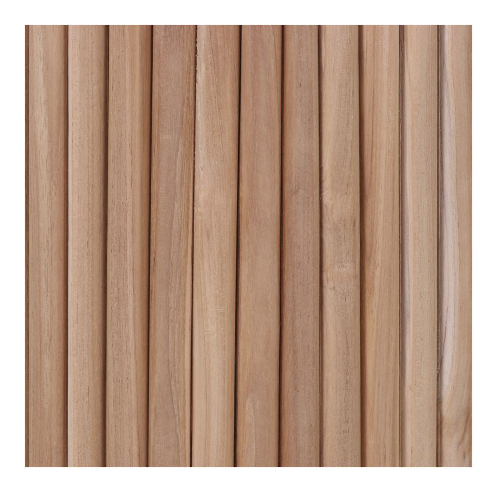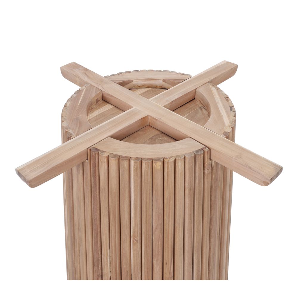 Made of teak wood with cylindrical base of wood sticks.
