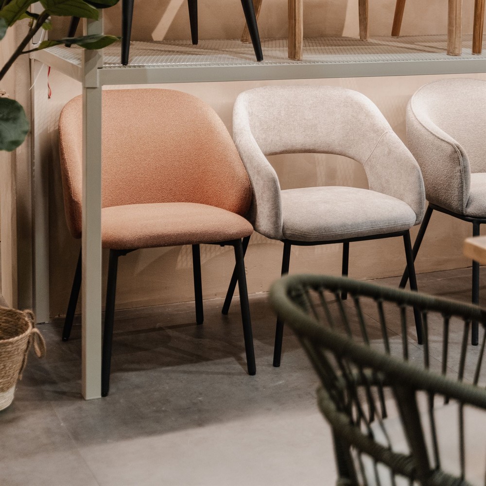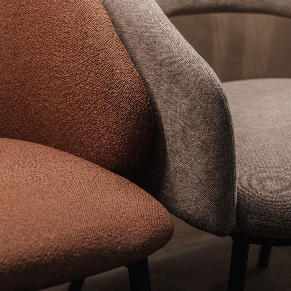 The textile upholstered seat and backrest offer comfort and softness to the touch, creating a cozy atmosphere in any space. The choice of fabric not only responds to aesthetic criteria, but also to practical considerations of comfort and maintenance.