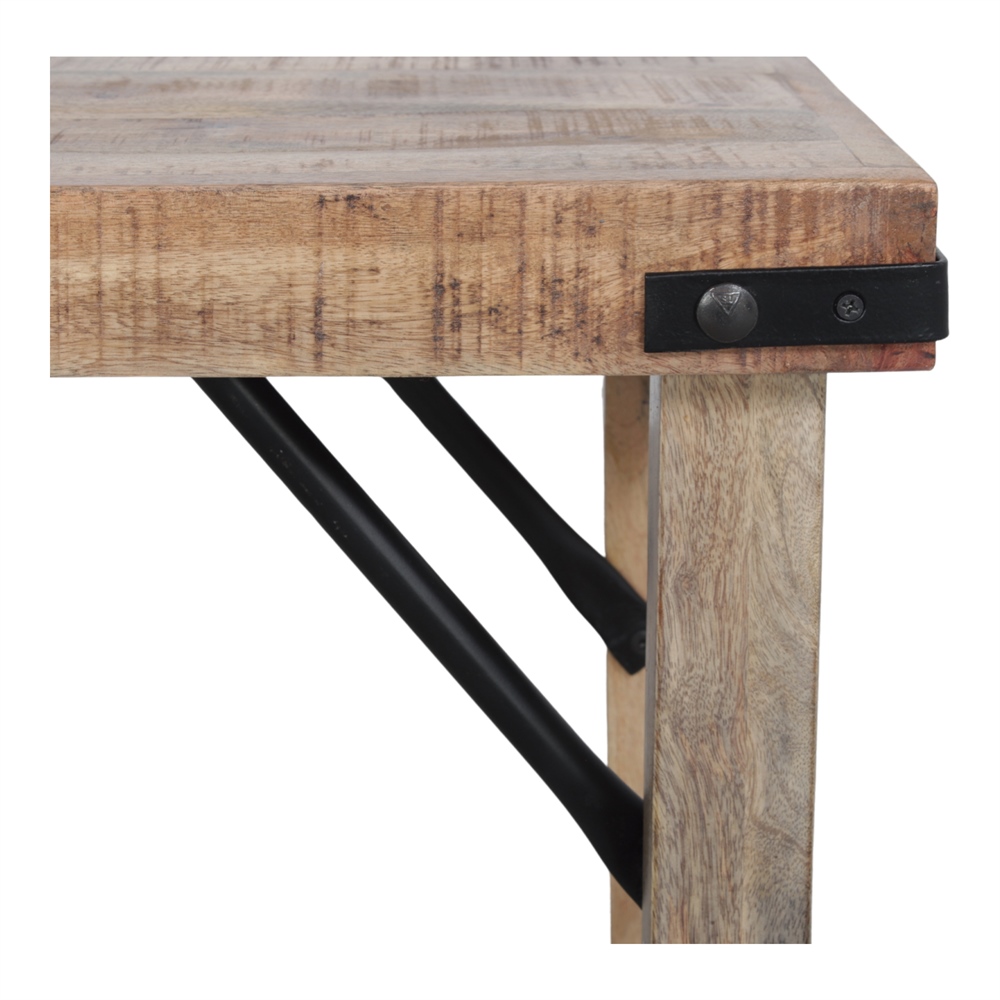 Wooden bench Rustic Vintage style. Made of aged tropical wood, and foldable legs.