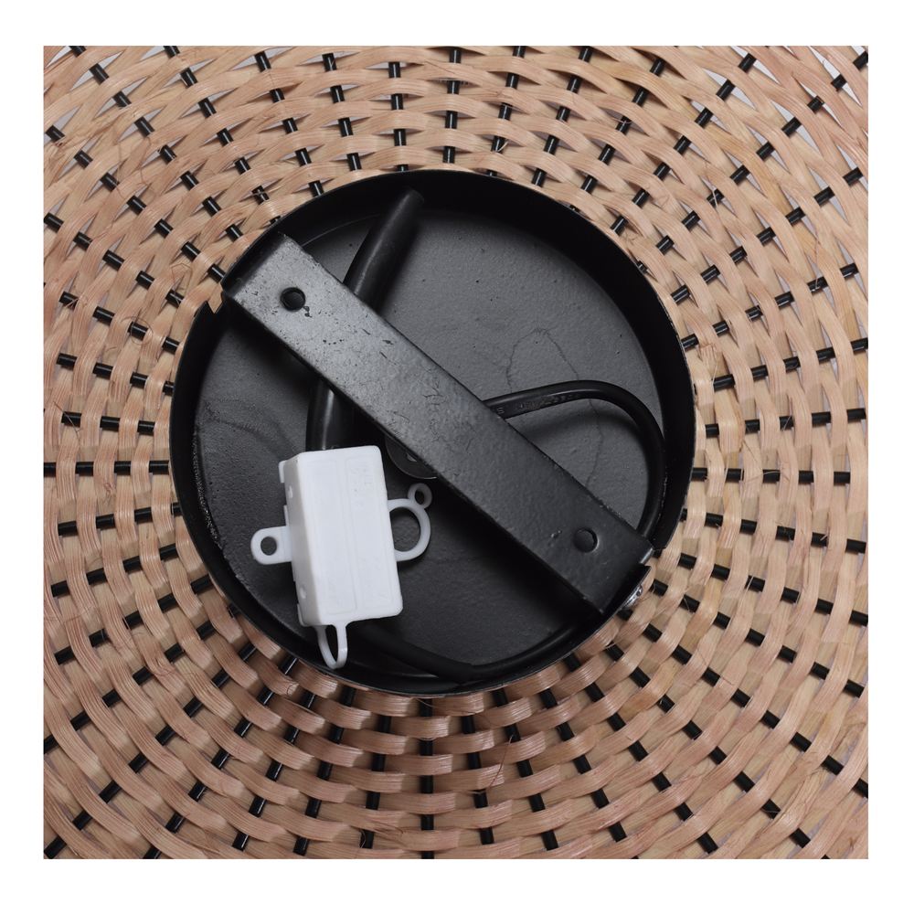 Soley wall light, made of natural rattan, an ecological and resistant material that brings warmth and authenticity to your spaces. Its round design and hand-woven fabric create a unique visual effect, projecting a soft and cozy light ideal for bedrooms, living rooms or hallways. This wall light combines functionality and aesthetics, being perfect for bohemian, rustic, Mediterranean or natural decorative styles. Its finish in warm tones makes it a versatile accessory that adds a touch of sophistication and connection with nature. Includes support for easy and safe installation. Give personality to your walls with the Soley wall light.