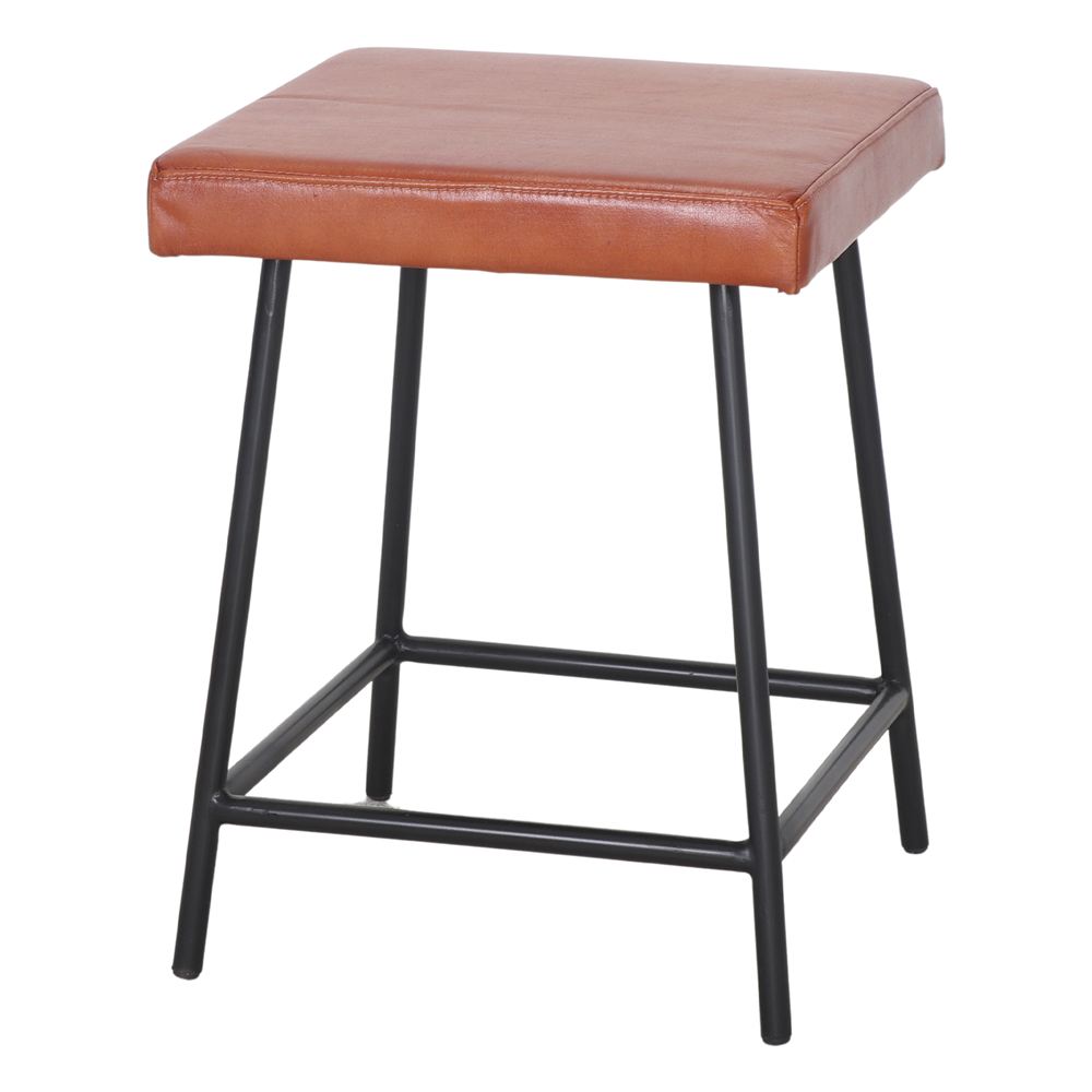 Leather low stool Industrial style. Steel frame with powder paint finishing, and hand sewn leather seat.
