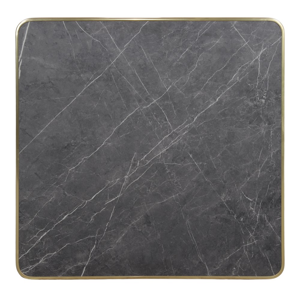 Lorna Graphite Tabletop made of stratified plywood with a fero grafite finishing, encased in an aluminum frame with a brass anodized finishing.