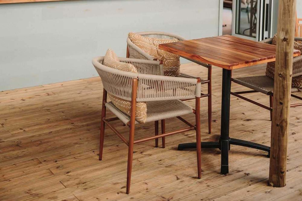 In short, the Mediterranean style for decorating a café is characterized by its freshness, simplicity and connection to nature. With the right combination of soft colors, light furnishings and themed decorative details, you can create a relaxing atmosphere that transports customers to the serenity of the Mediterranean coast. We show you a braided natural fiber chair that is perfect for this style. You can also combine it with a table with a ceramic top and you will have a charming space with an authentic Mediterranean style.