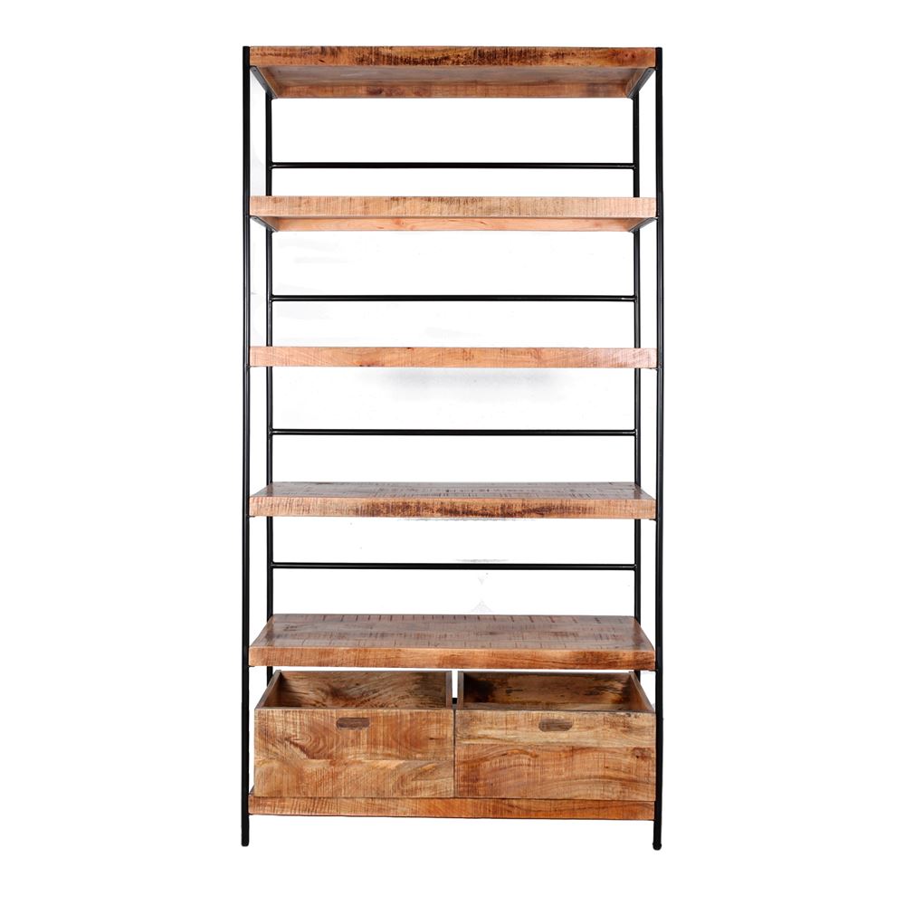 Wooden shelf Industrial style. Made of tubular steel, with shelves and wooden drawers made of mango wood with saw cut.