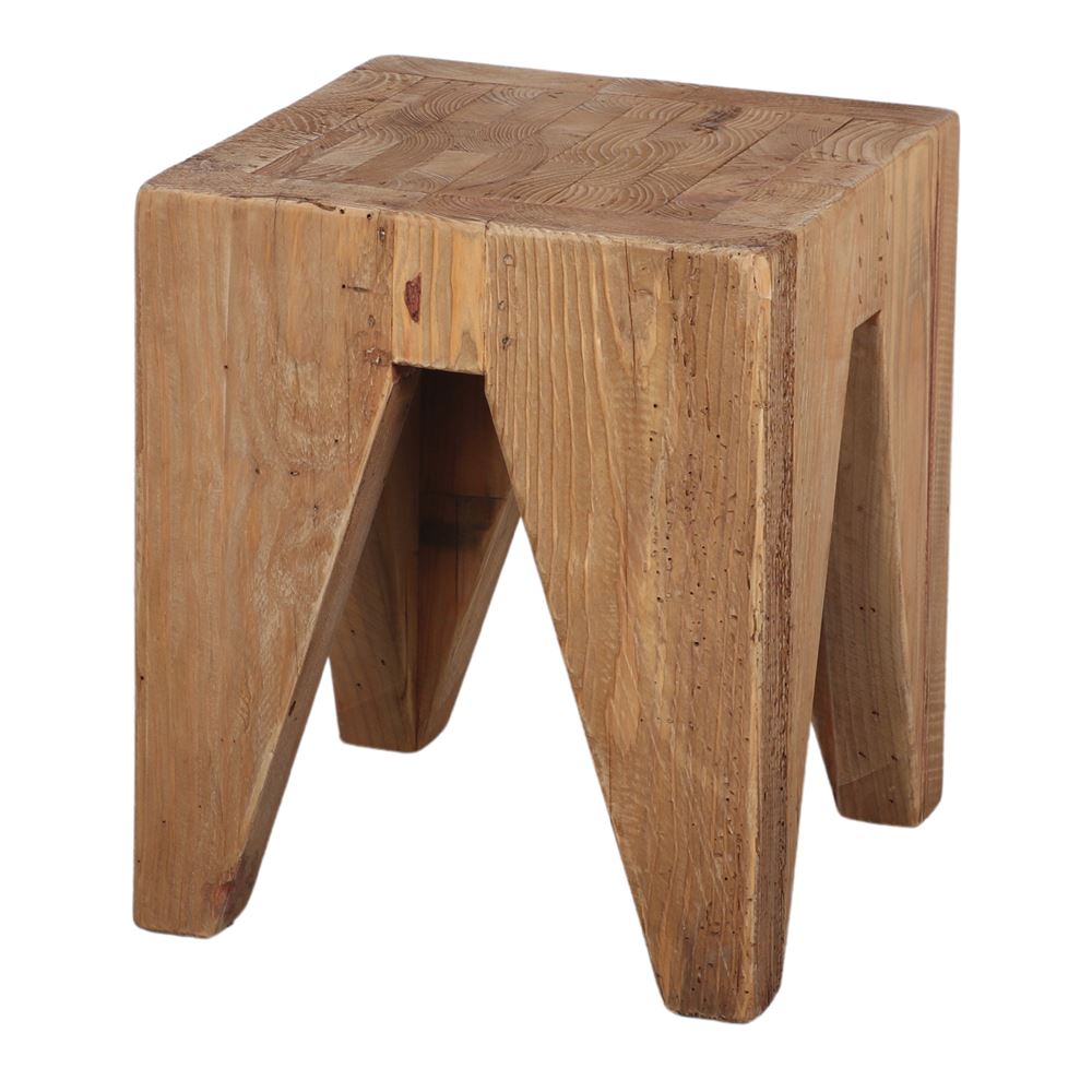 Surat low wooden stool in rustic style.