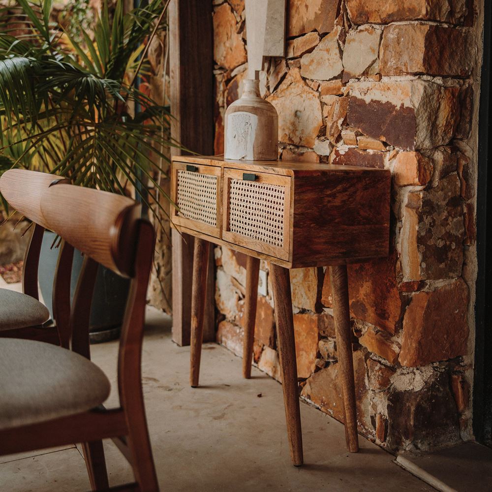 Modern and elegant, the Surbeanie wooden sideboard made of wood and rattan has everything it needs to dazzle you. It will be the perfect adittion to a Mediterranean look living room, or to a chic beach outdoor space. Perched up to wooden legs, this sideboard will provide a modern look thanks to it cane drawers. The braiding method used in this sideboard is a trend nowadays, and will fit perfectly in any kind of interior space. You will appreciate the big drawers of this sideboard, which will provide a great storing capacity. Wood, rattan cane, generous storing: this sideboard has it all!