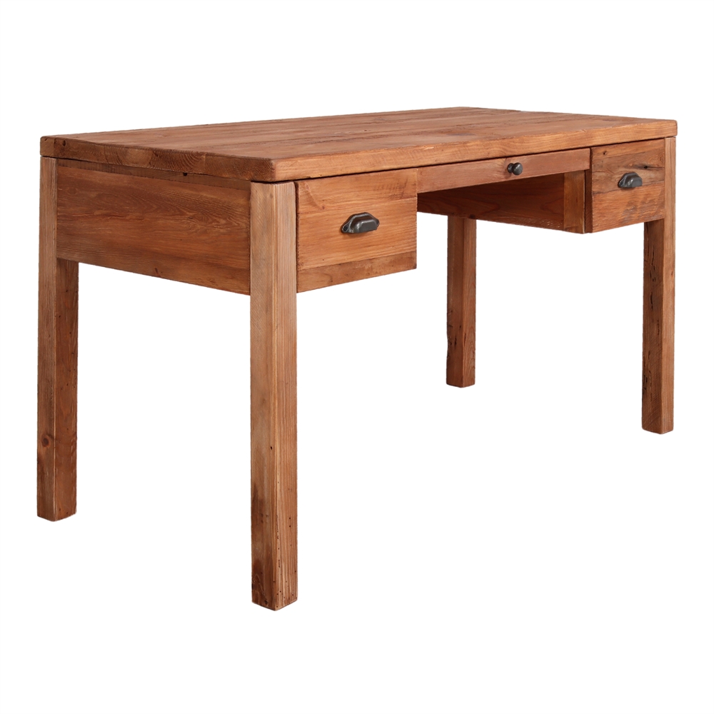 Wooden desk Rustic Vintage style, made of solid recycled pinewood, with 3 drawers.