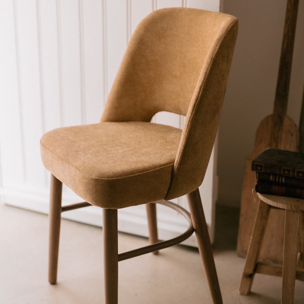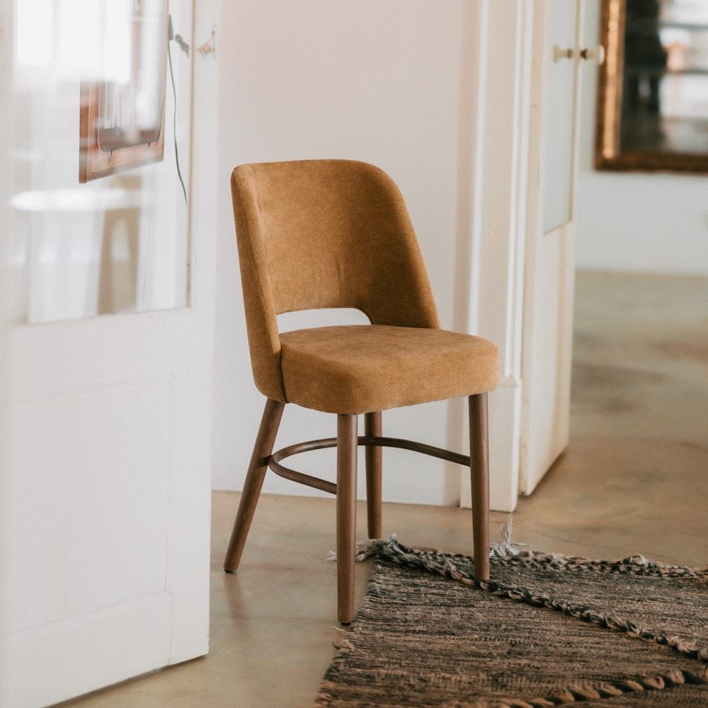The Tebrasa upholstered chair in contemporary style is a sleek and modern option for home or office. It is made from wood, with legs in beech wood, which is known for being strong and durable, making it a popular choice for high quality furniture, with seat and back fully upholstered in soft textile. These chairs tend to have clean, minimalist lines, with smooth finishes and neutral colours that suit any environment. These chairs are ideal for complementing a contemporary space, adding a touch of elegance and sophistication. Their ergonomic design makes them comfortable to sit in for long hours, making them a practical and aesthetically pleasing option.