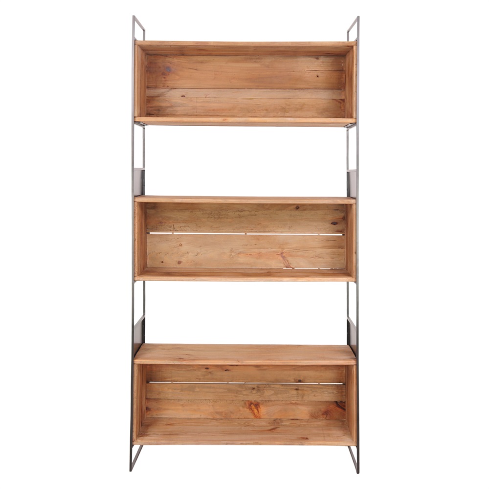 Wooden shelf Industrial style. Frame made of steel, with powder paint finishing. Shelves made of recycled pinewood.