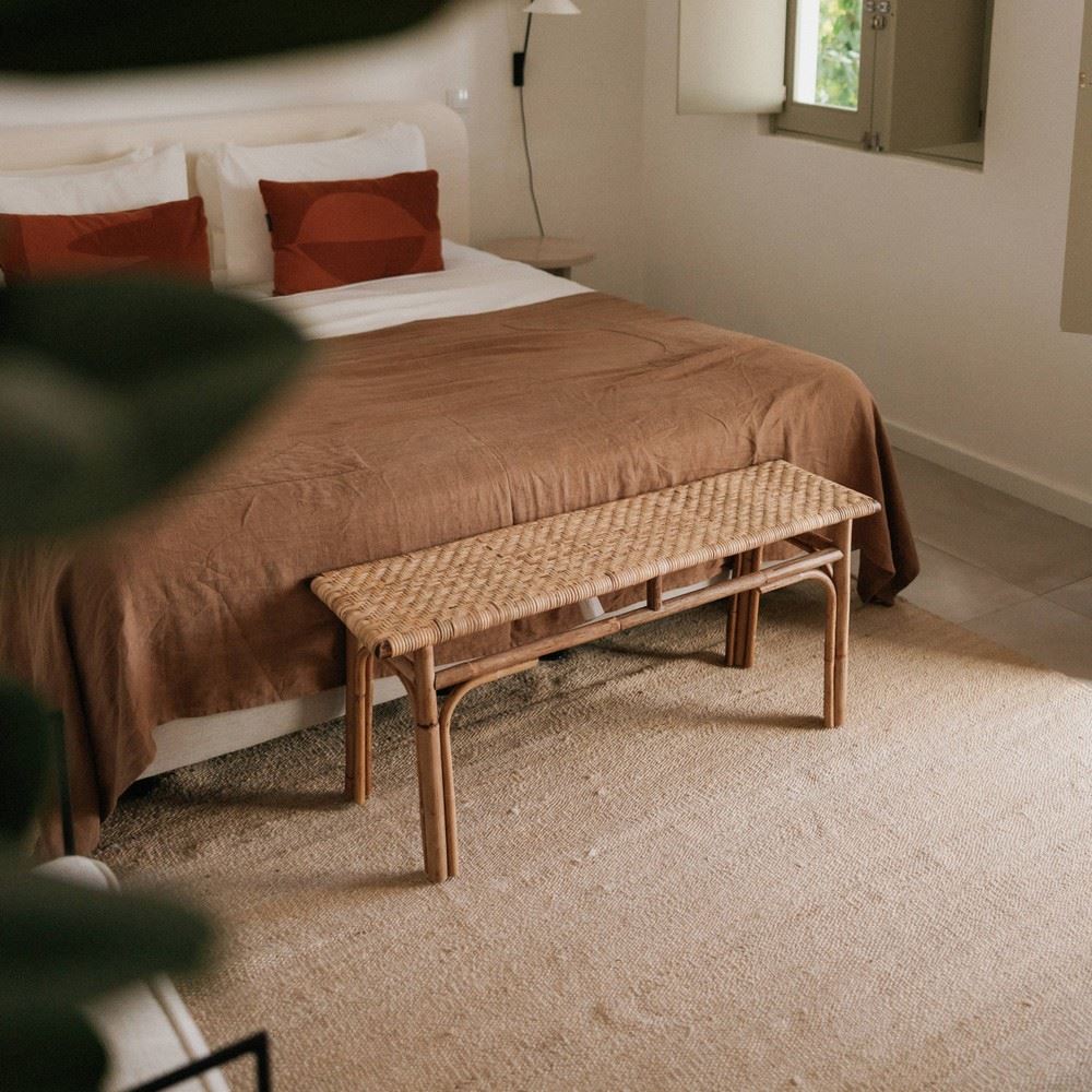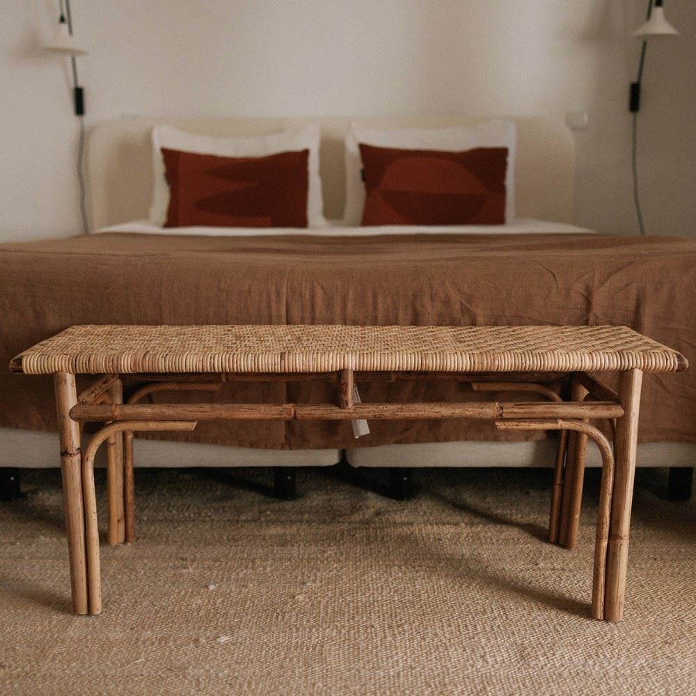 Theo is a bench made of natural rattan, in Mediterranean or Ethnic style. This bench in natural tones is perfect as a complement in the entrance of the house, in a room at the foot of the bed. The Theo rattan bench is a light piece of furniture, due to its manufacturing material, besides being a product friendly with nature, it is perfect for the interior of our home.