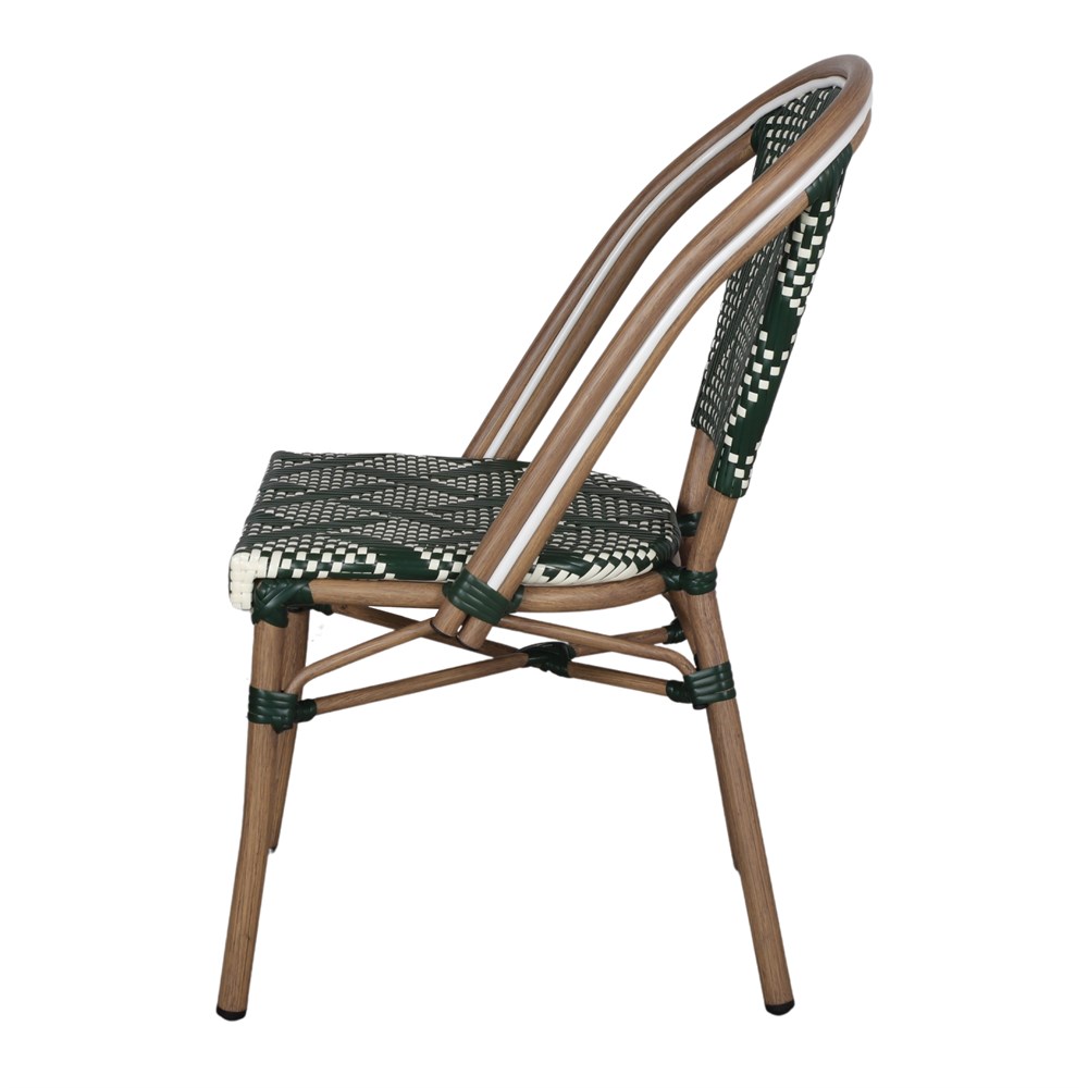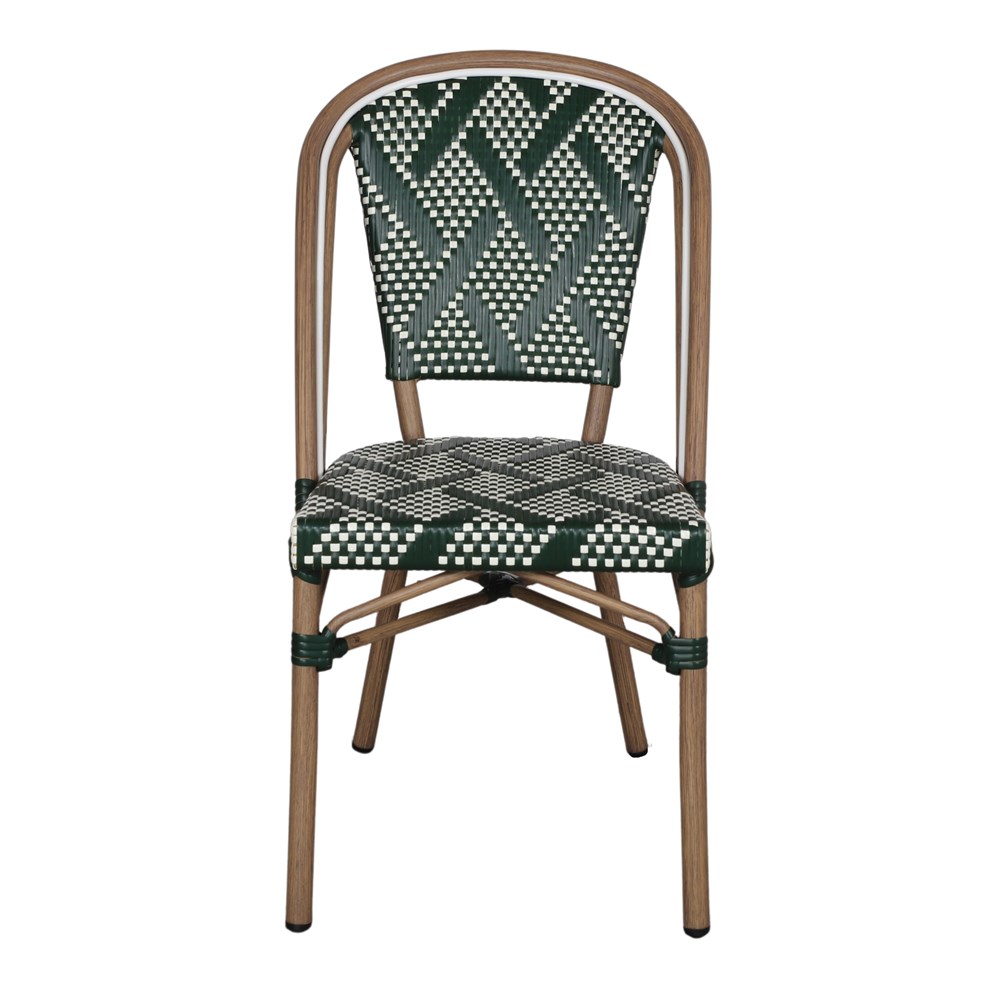 Our Today outdoor bistro-style chair is made of aluminum with a faux rattan and synthetic pith finish. Synthetic rattan is about to make its way into any outdoor setting, and it’s no surprise: its solid weave lends texture to the look and has been used in some of the most iconic designs in decorating history. In this outdoor chair, synthetic rattan brings a more contemporary feel than traditional rattan and is easy to maintain. Perfect for a patio, deck or garden. Mix it with other Bistro style furniture for the perfect combination. Its unique design is a recipe for an original piece that will add a Parisian touch to your space.