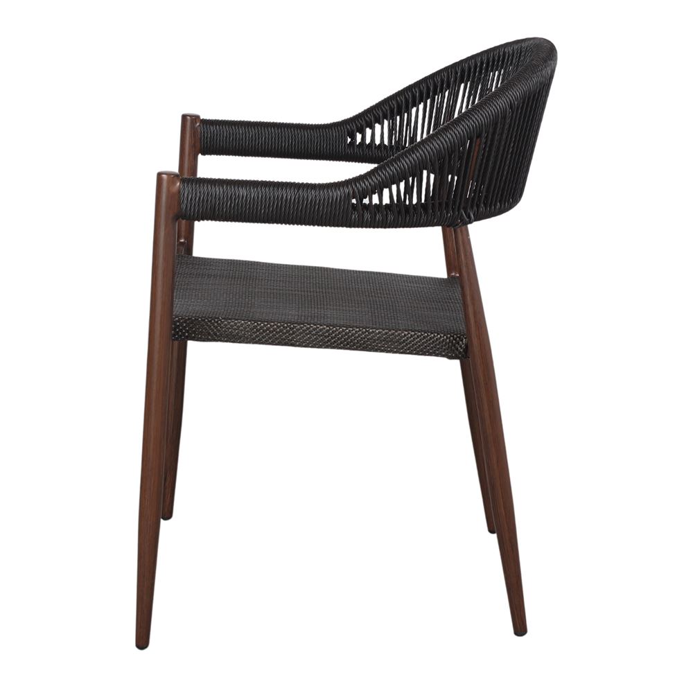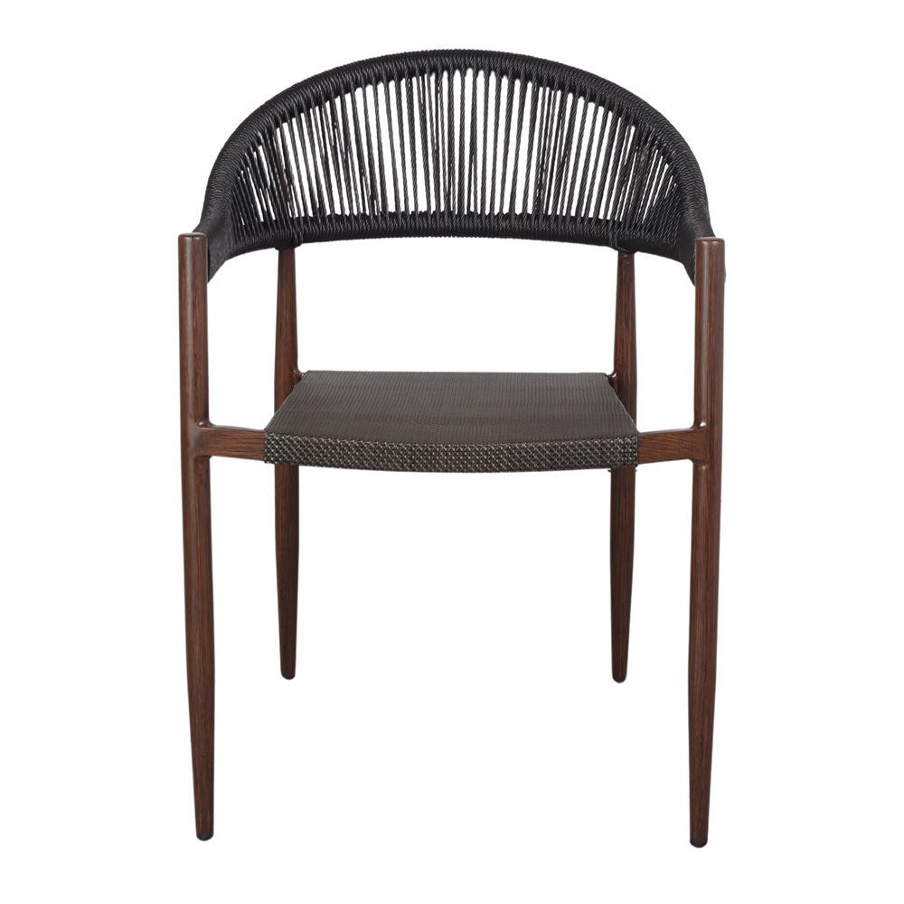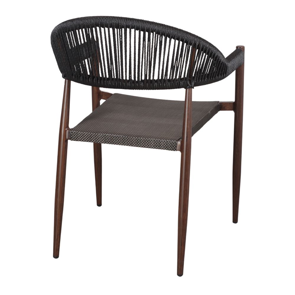 Our Truman outdoor chair has an aluminium frame with wooden effect finishing. The seat is upolstered in textilene and the backrest is made of polyester cord. This outdoor chair follows the Nordic-Contemporary style. Thanks to its manufacturing materials, this chair is very comfortable and lightweight, and its maintenance its really easy, since textilene is a fabric that stands out for being so comfortable to clean. It’s ideal for catering premises, for all these features, and for being a chair with a beautiful design and an original combination of materials and colors.