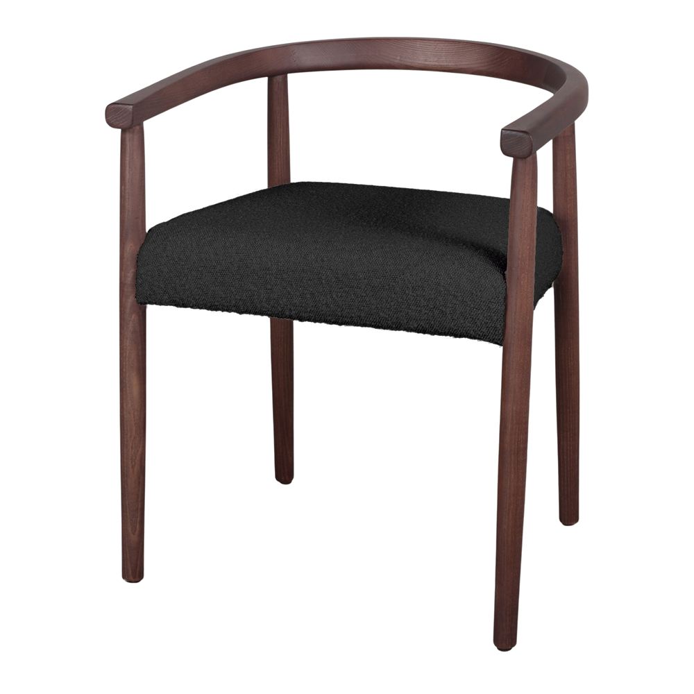 The Valky wooden chair offers a contemporary design that fuses elegance and functionality. Made from elm wood, this piece captivates with its simplicity and sophistication. Its distinctive curved backrest provides ergonomic support that invites comfort and relaxation, while the textile upholstered seat adds a touch of softness and comfort.