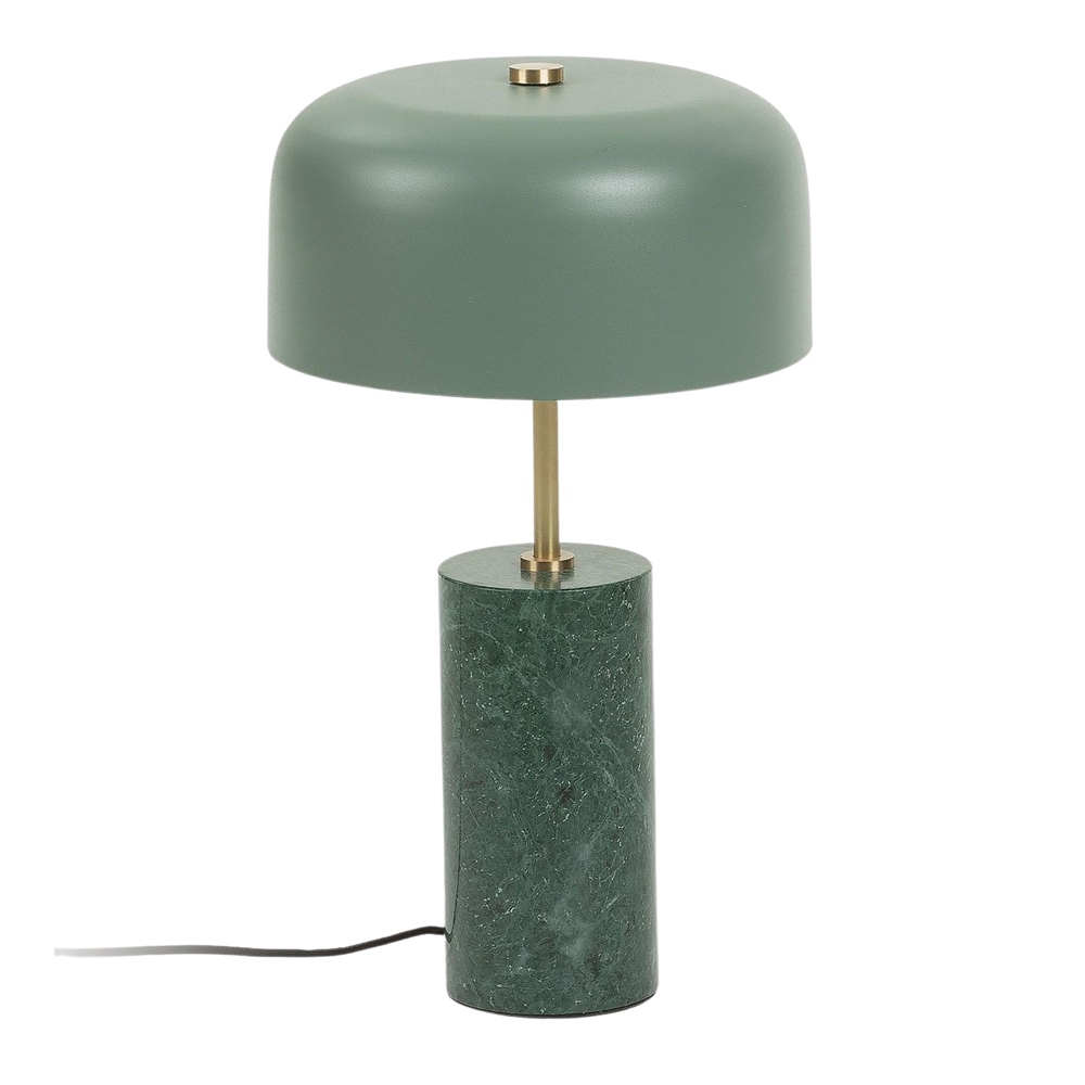 The Videl table lamp in metal with matte brass and green marble finish has a design that is inspired by retro decor and adds a touch of modernity to your space.