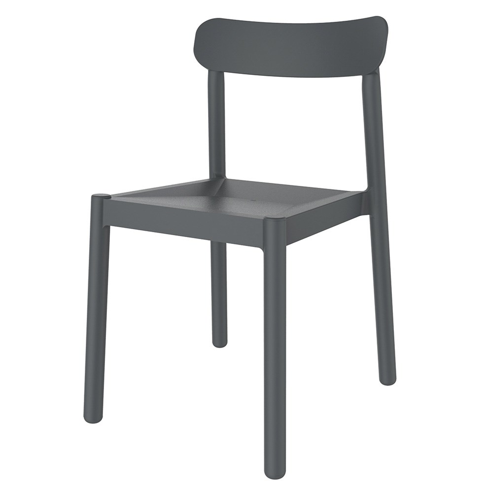 Stackable chair made of injected polypropylene, suitable for indoors and outdoors. UV protection.