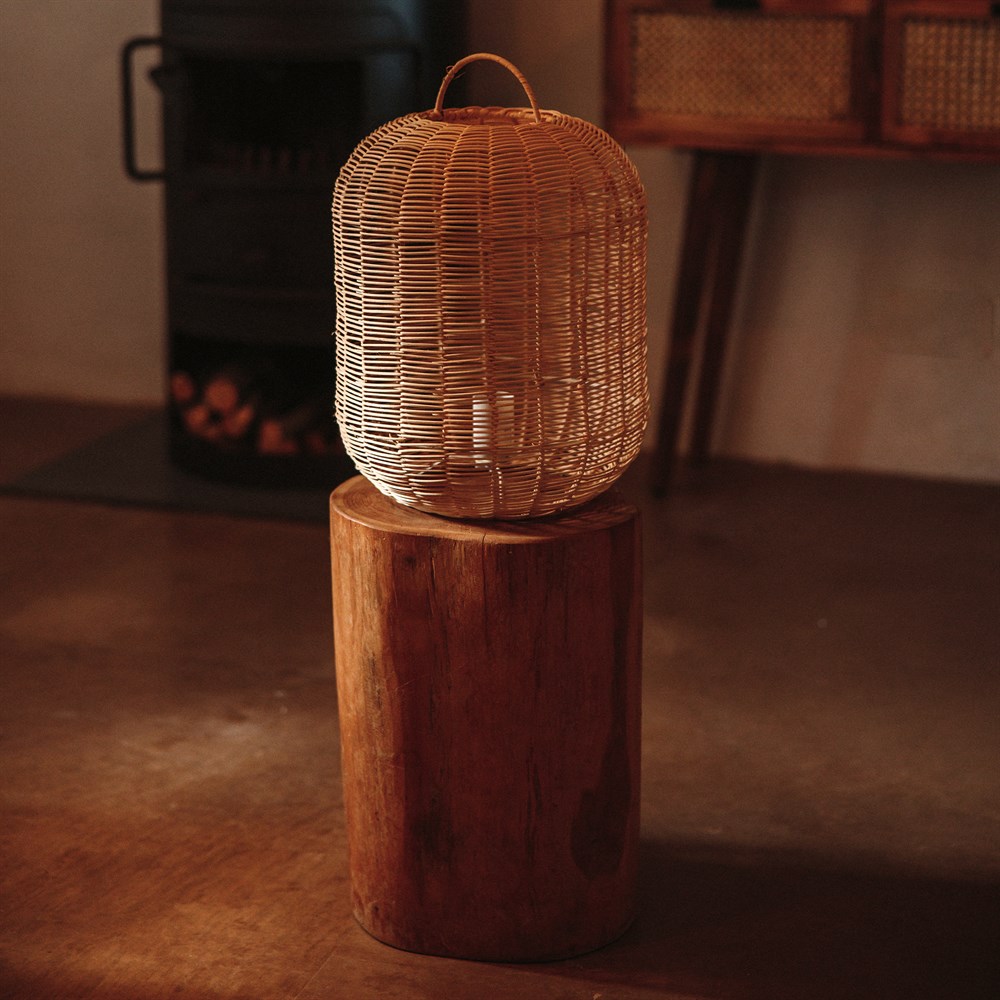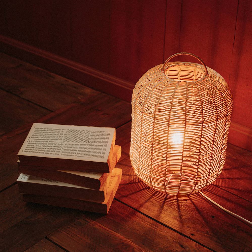 Table lamp made of natural rattan.